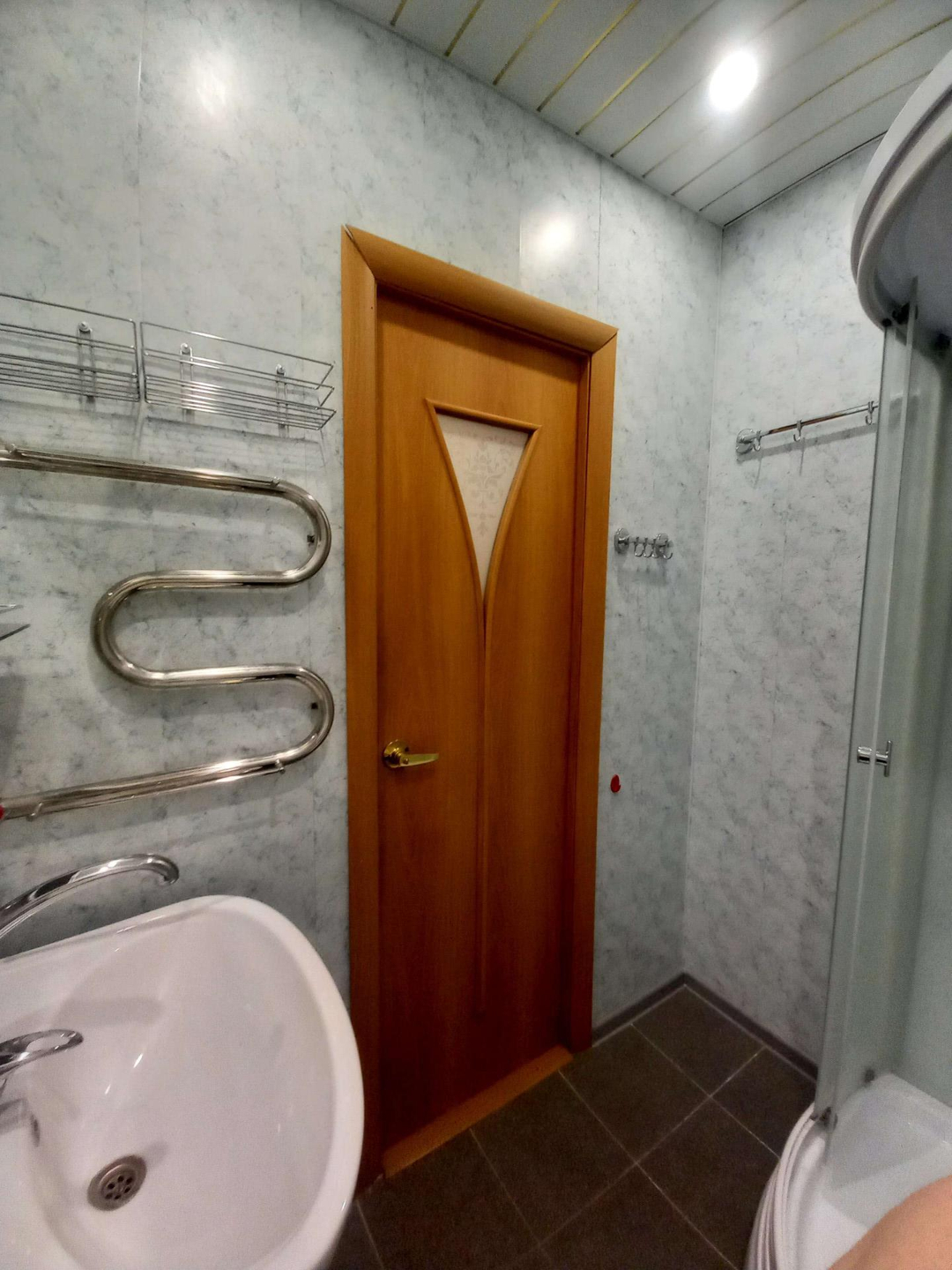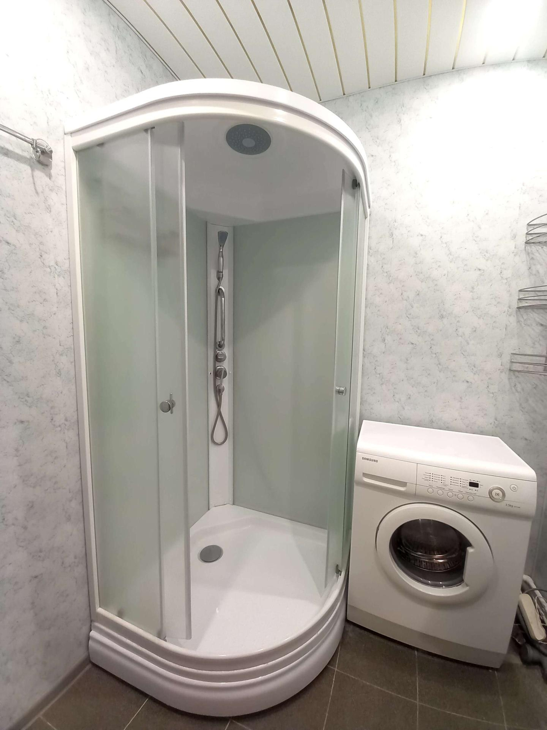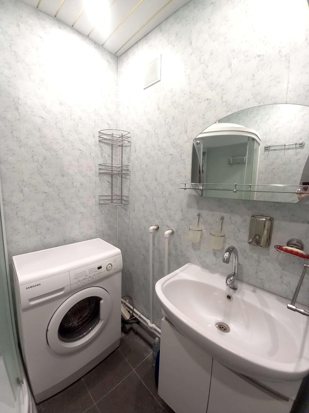 Санузел: в ванной комнате установлена душевая кабина, в туалете установлен водонагреватель для использования в период отключения горячей воды.