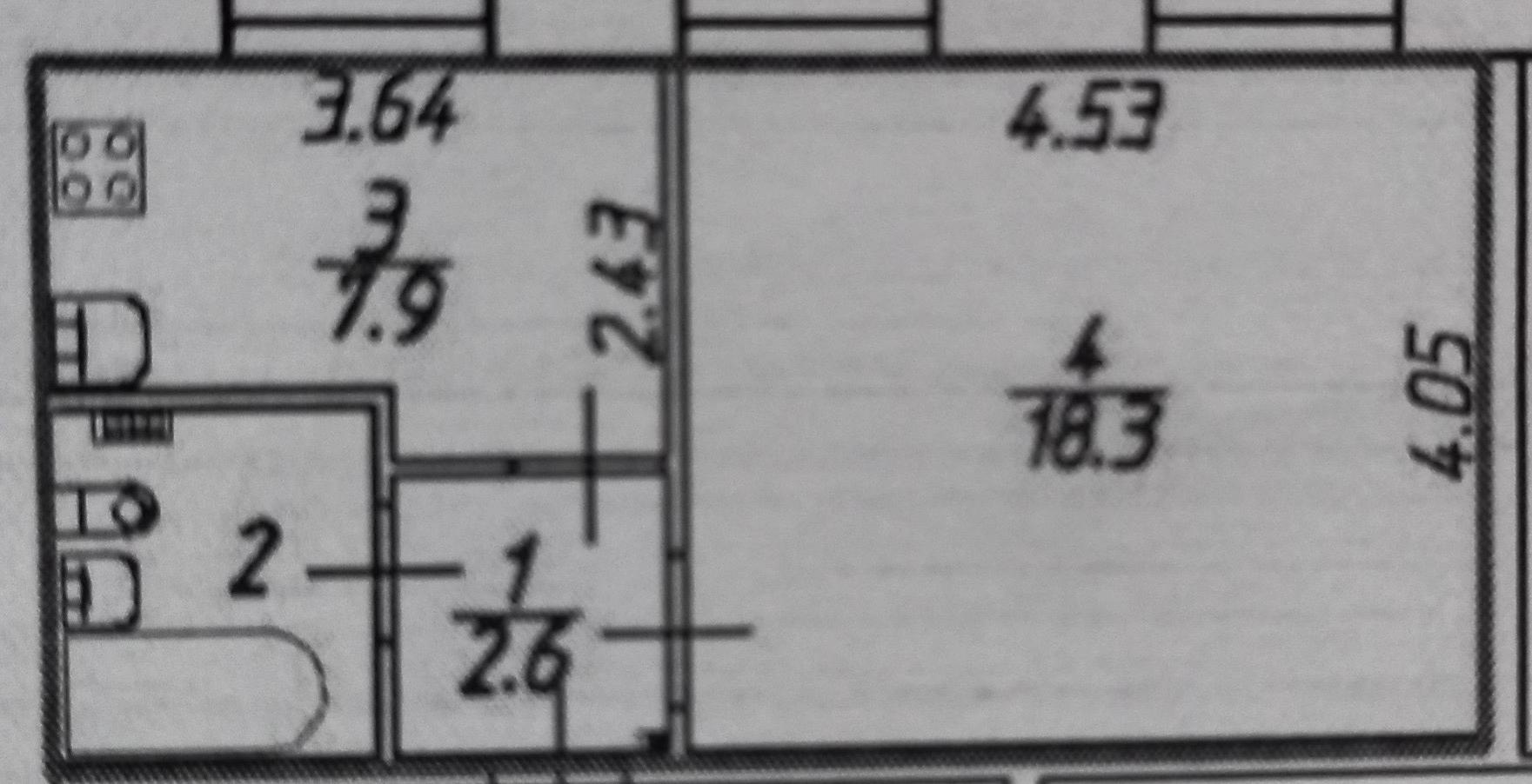 Жилая площадь 18.3 м2