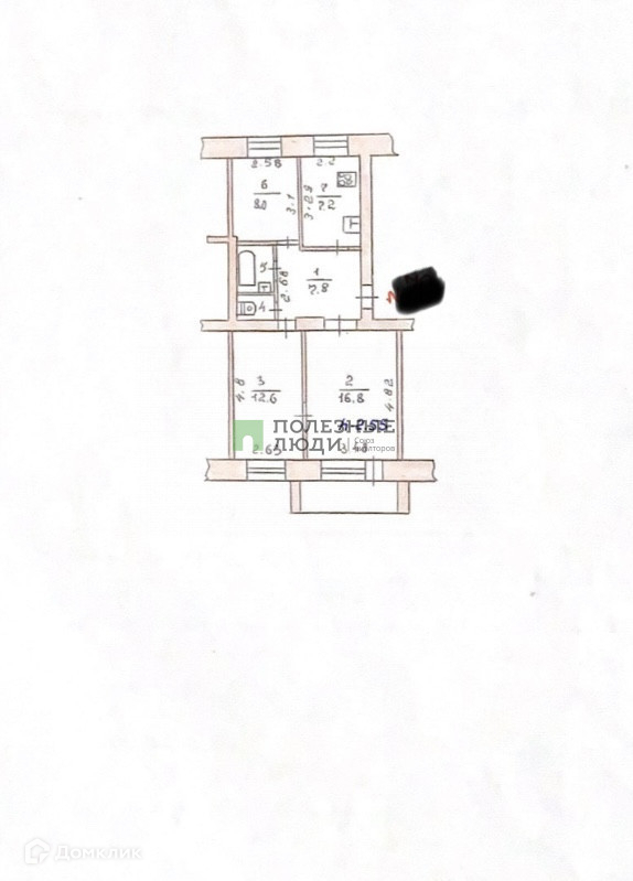 Жилая площадь 37.4 м2