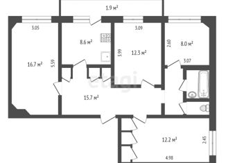 Продам комнату, 54.6 м2, Юрьевская улица, 16