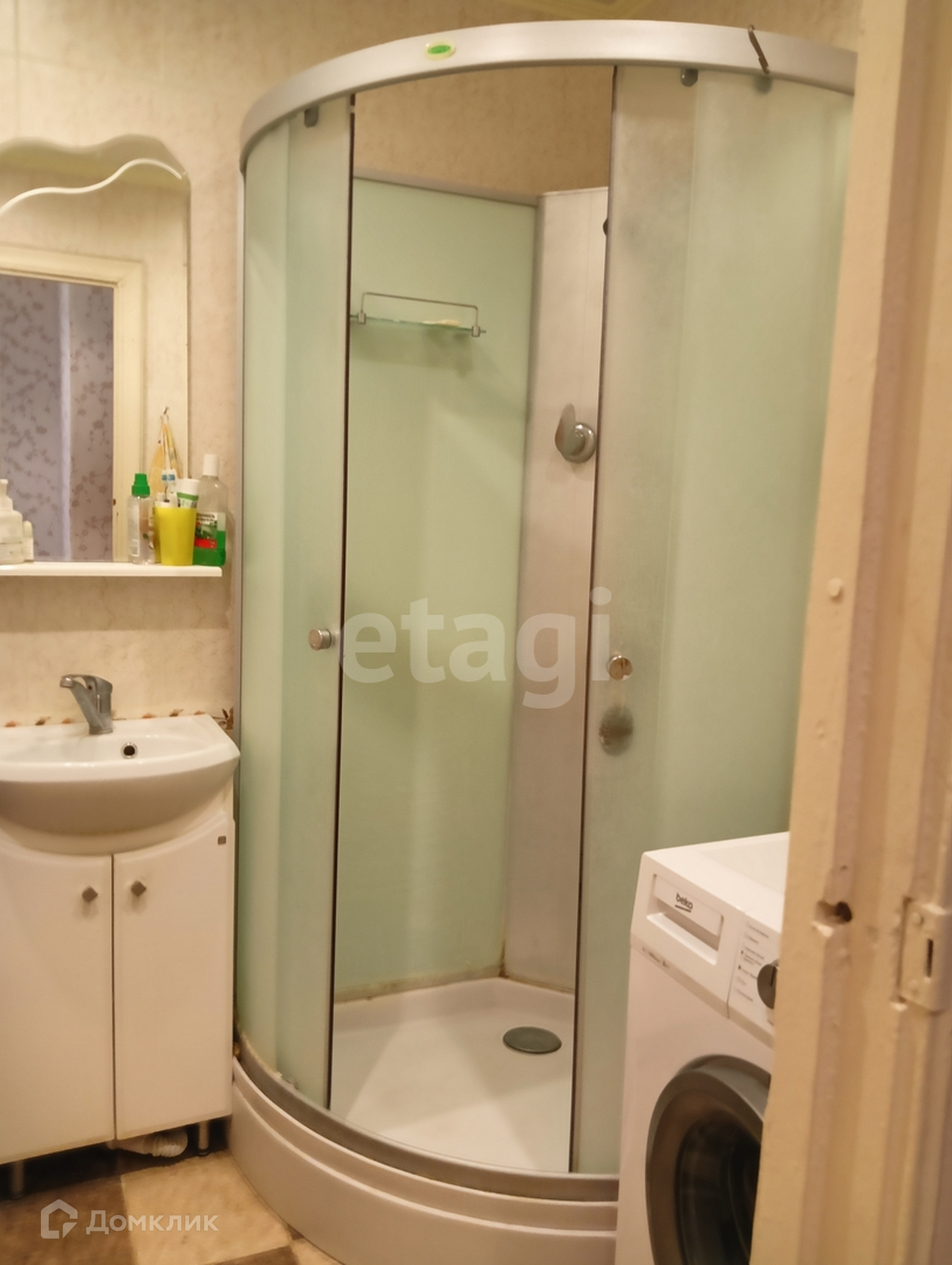 Сан.узел совмещенный, отделан кафелем, установлена душевая кабина.