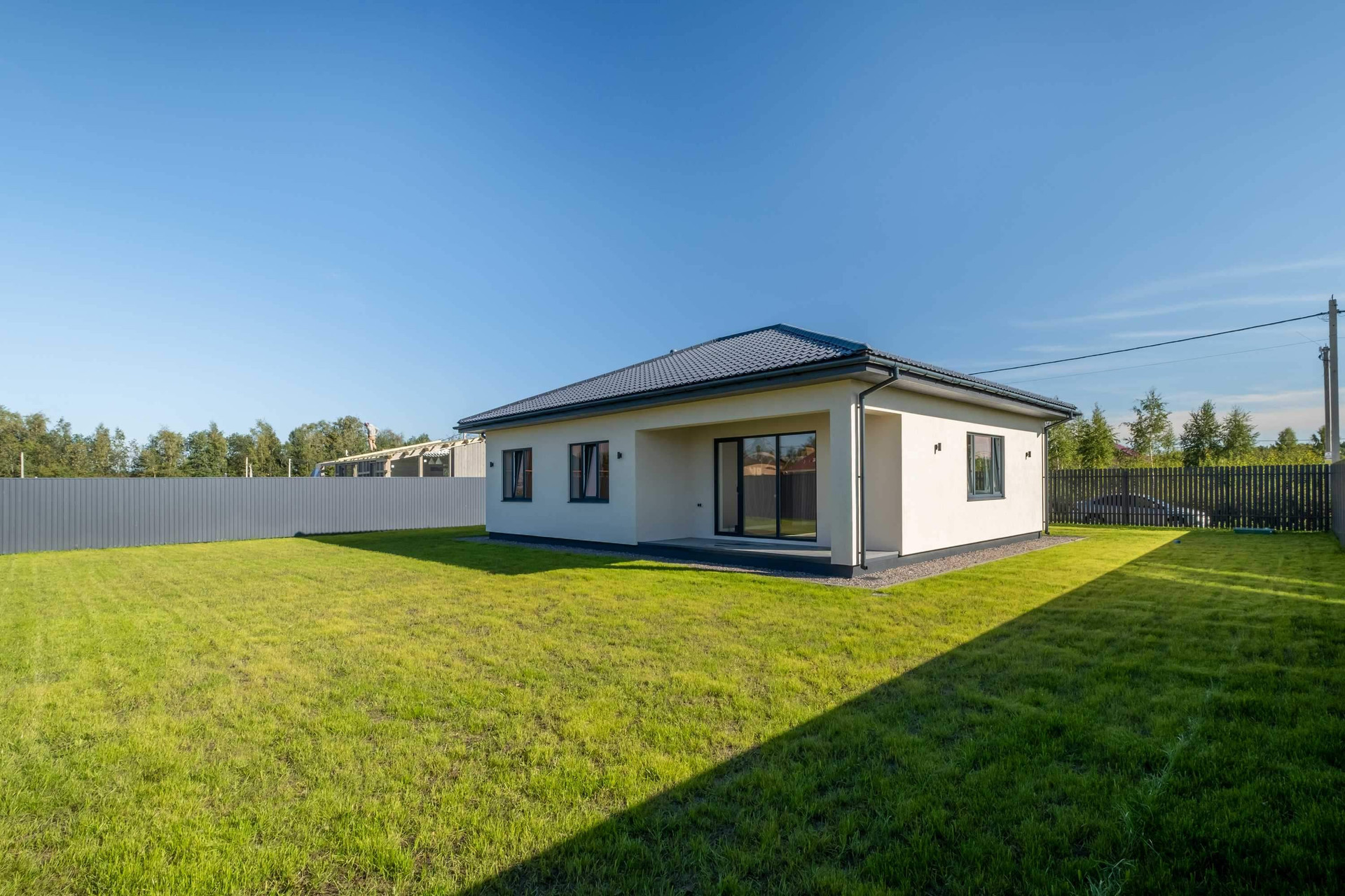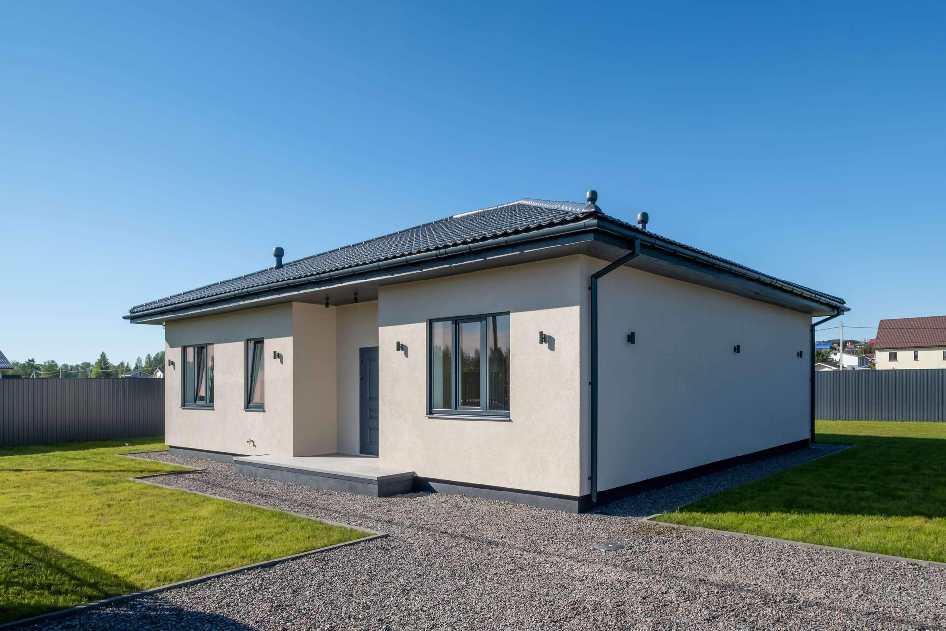 В доме 3 комнаты, просторная кухня-гостиная с панорамными окнами, санузел с ванной, отдельное помещение под гардероб, полностью оборудованная котельная, с учётом требований для газа.