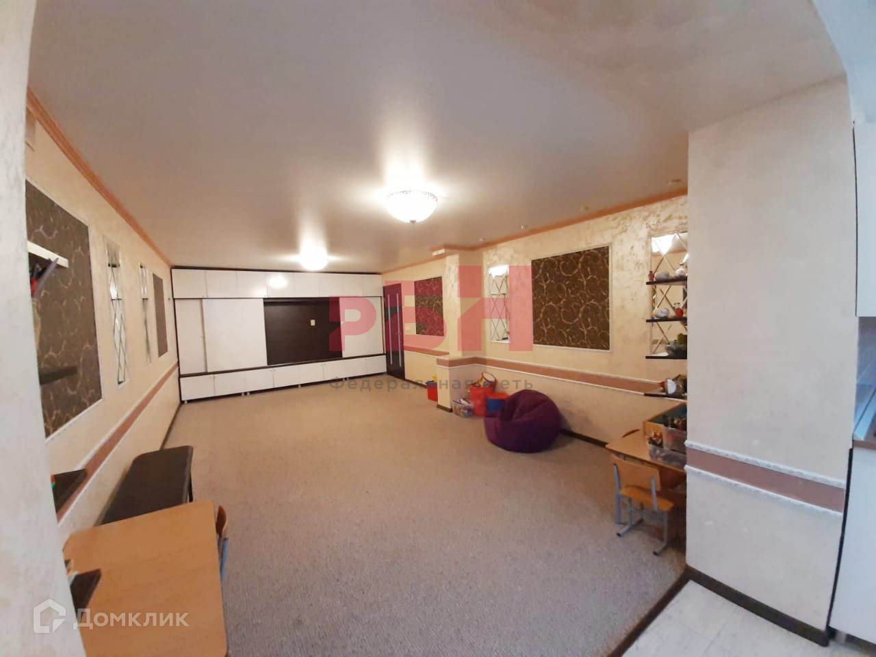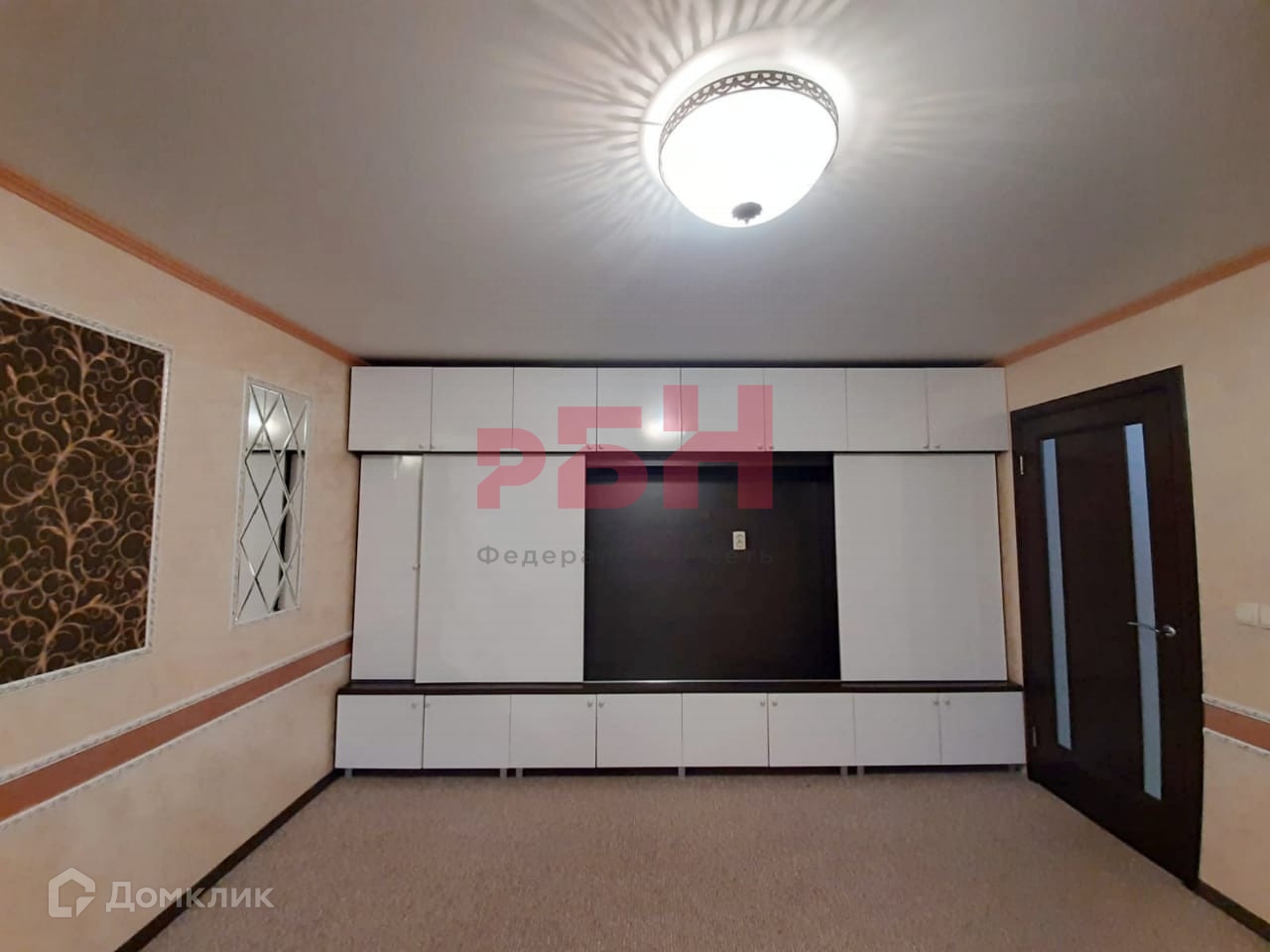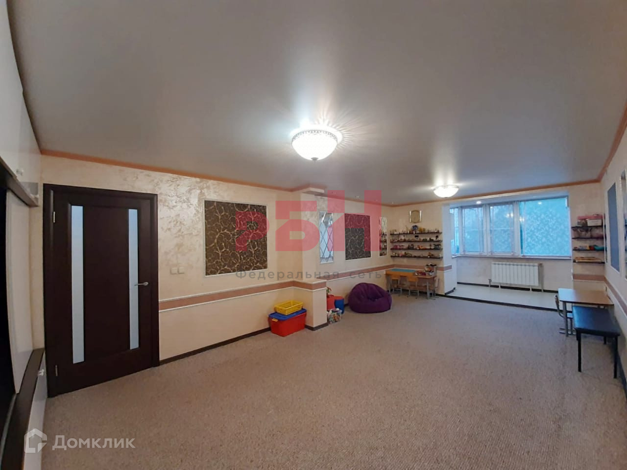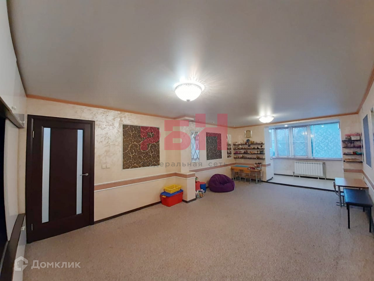 - Натяжной потолок, на полу – ковролин;