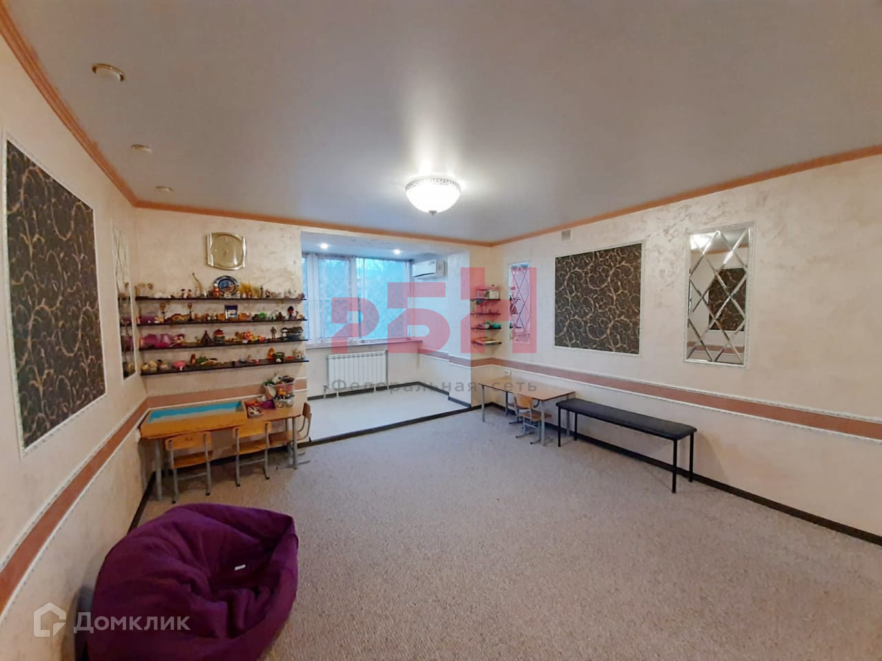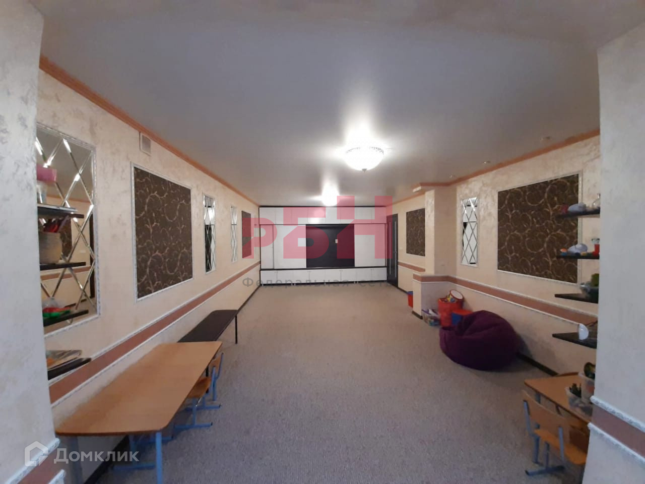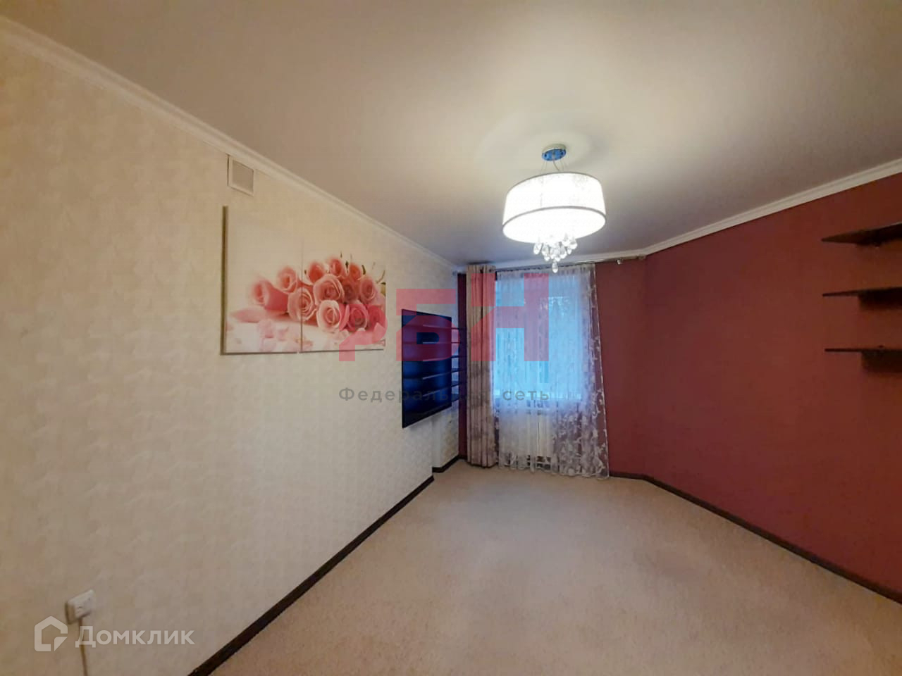 - Натяжной потолок, на полу – ковролин;