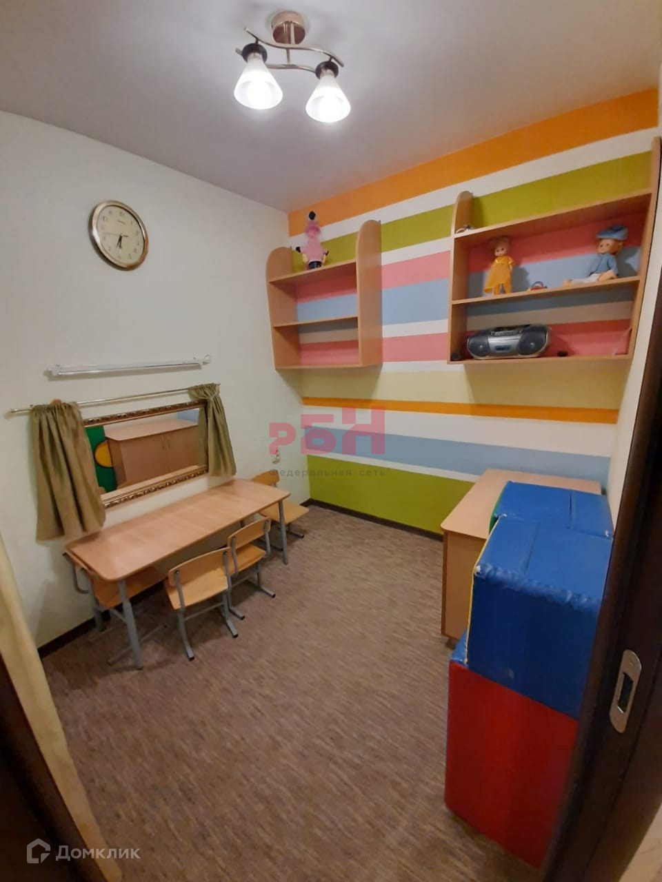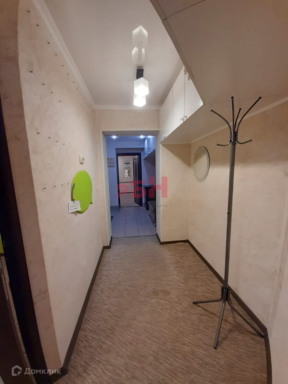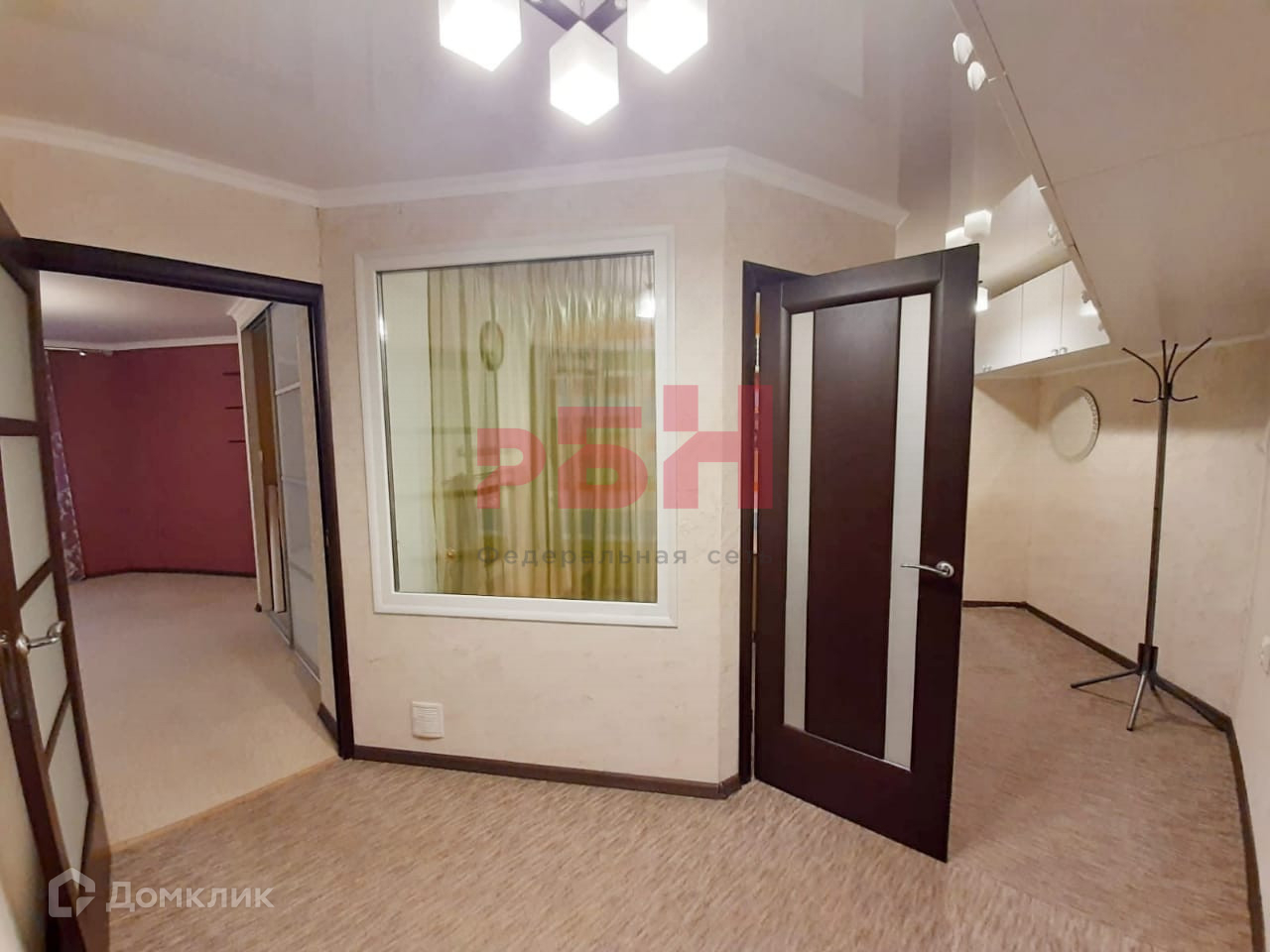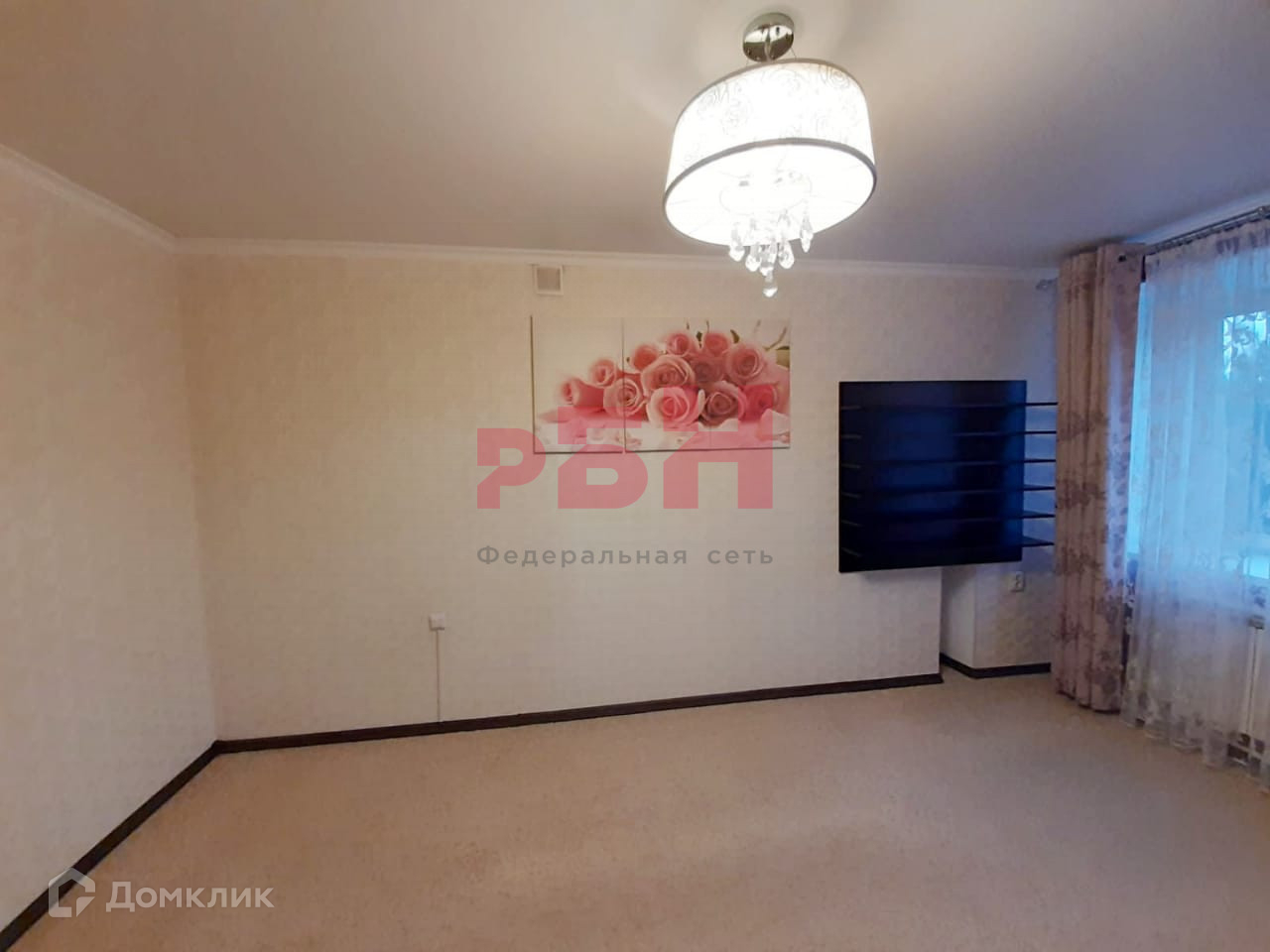- Натяжной потолок, на полу – ковролин;