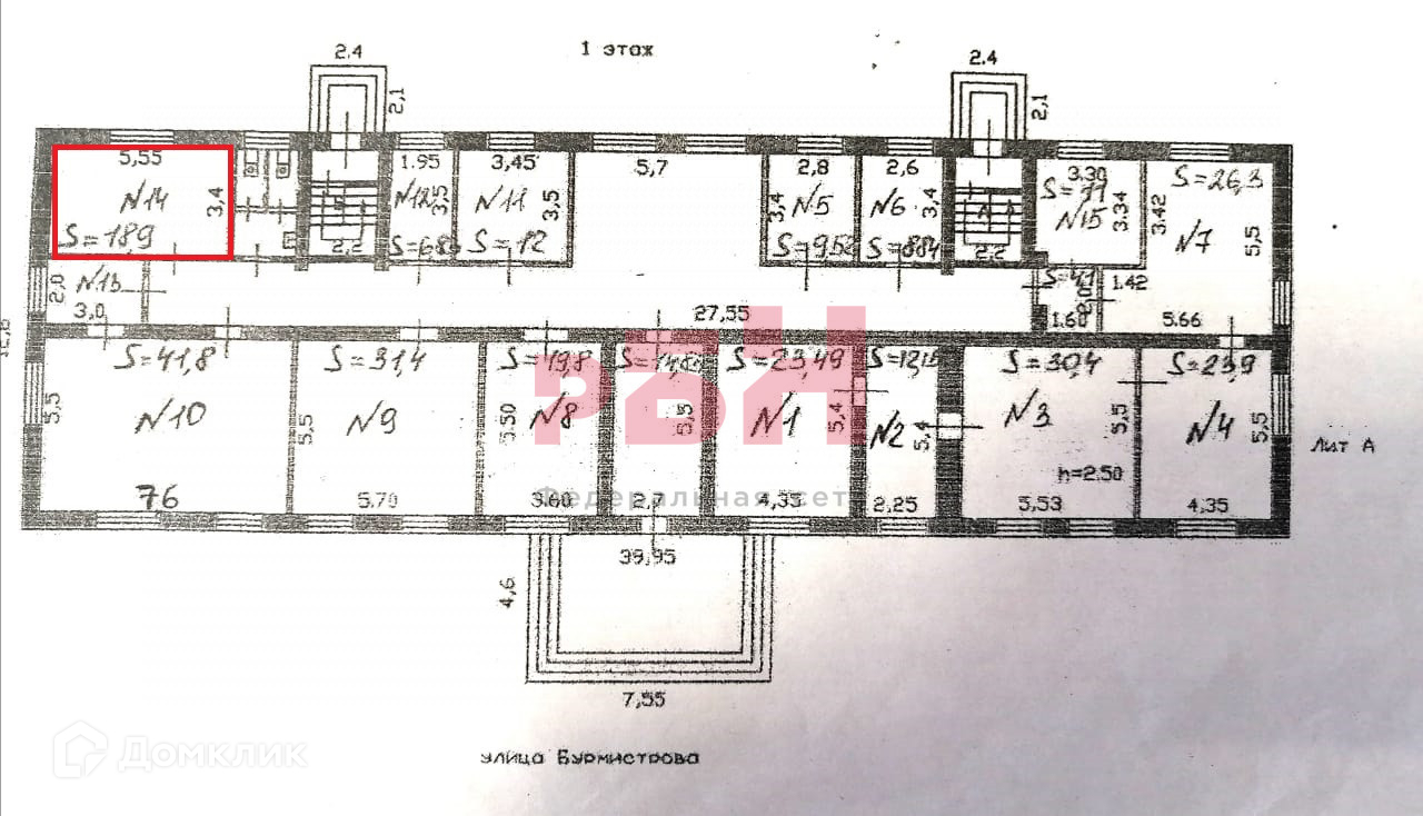 Сдается в аренду помещение на 1 этаже общей площадью 18,9 кв.м. , расположенный по адресу: г. Пенза, ул. Бурмистрова 6А.