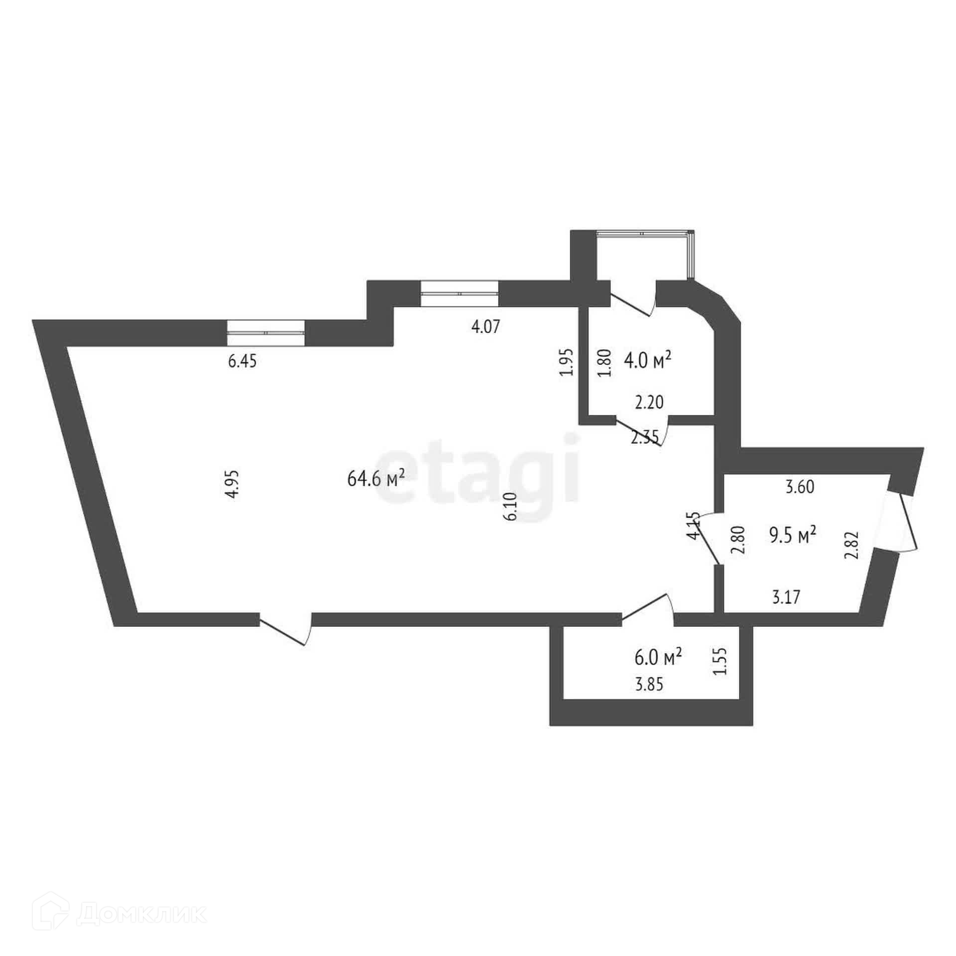1 пoмещeниe 64.6 кв. м.