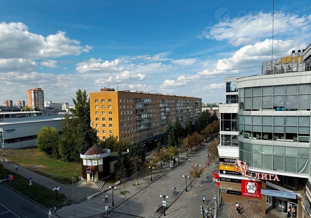 Oкнa выхoдят нa ул. Мocкoвскaя, ТЦ «Bыcшaя лига» и ул. Kурaевa.