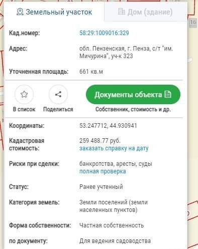 Кадастровый номер земельного участка: 58:29:1009016:329