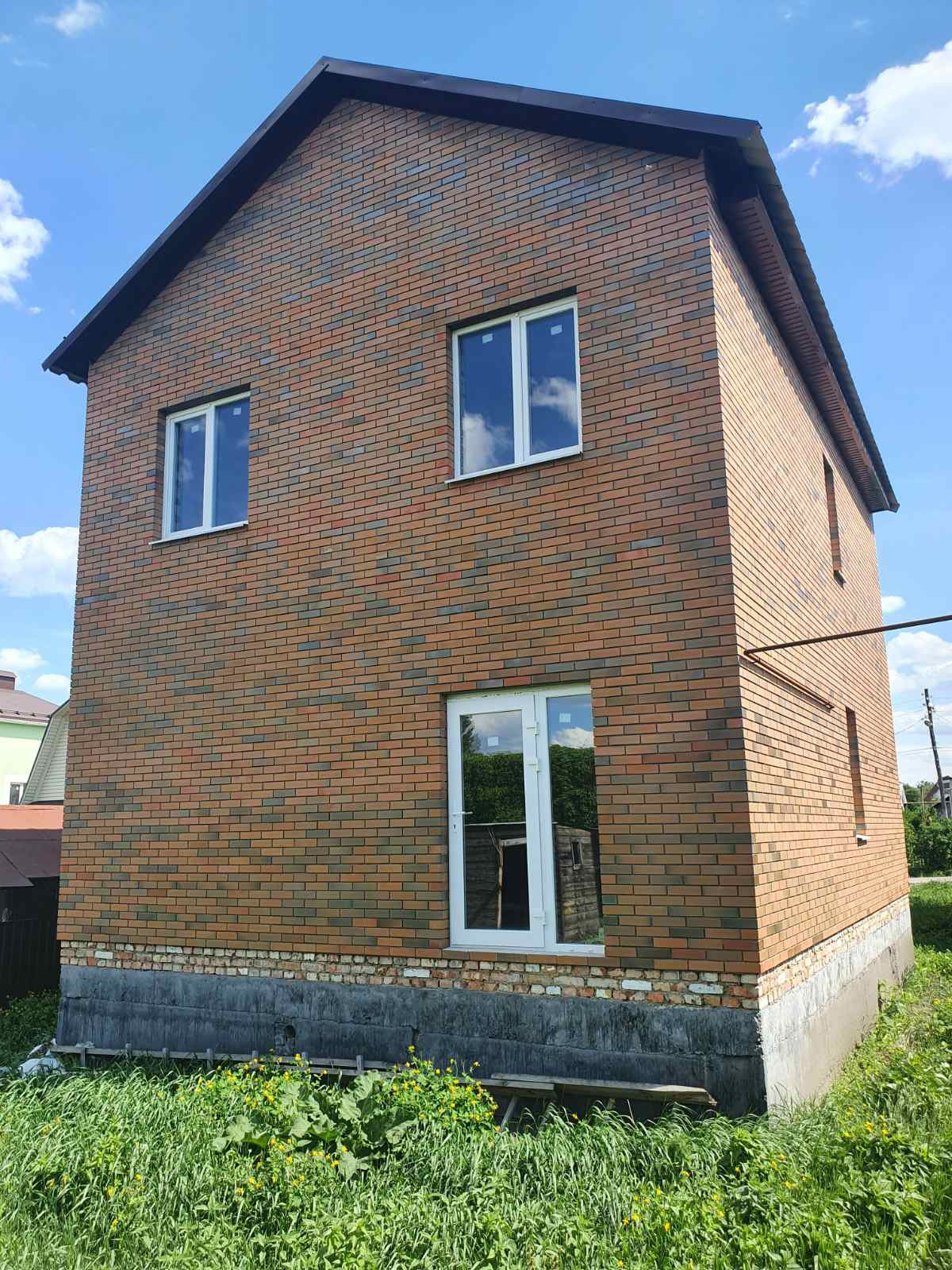 Стены газоблок («Грас»), фасад керамический облицовочный кирпич, баварская кладка.