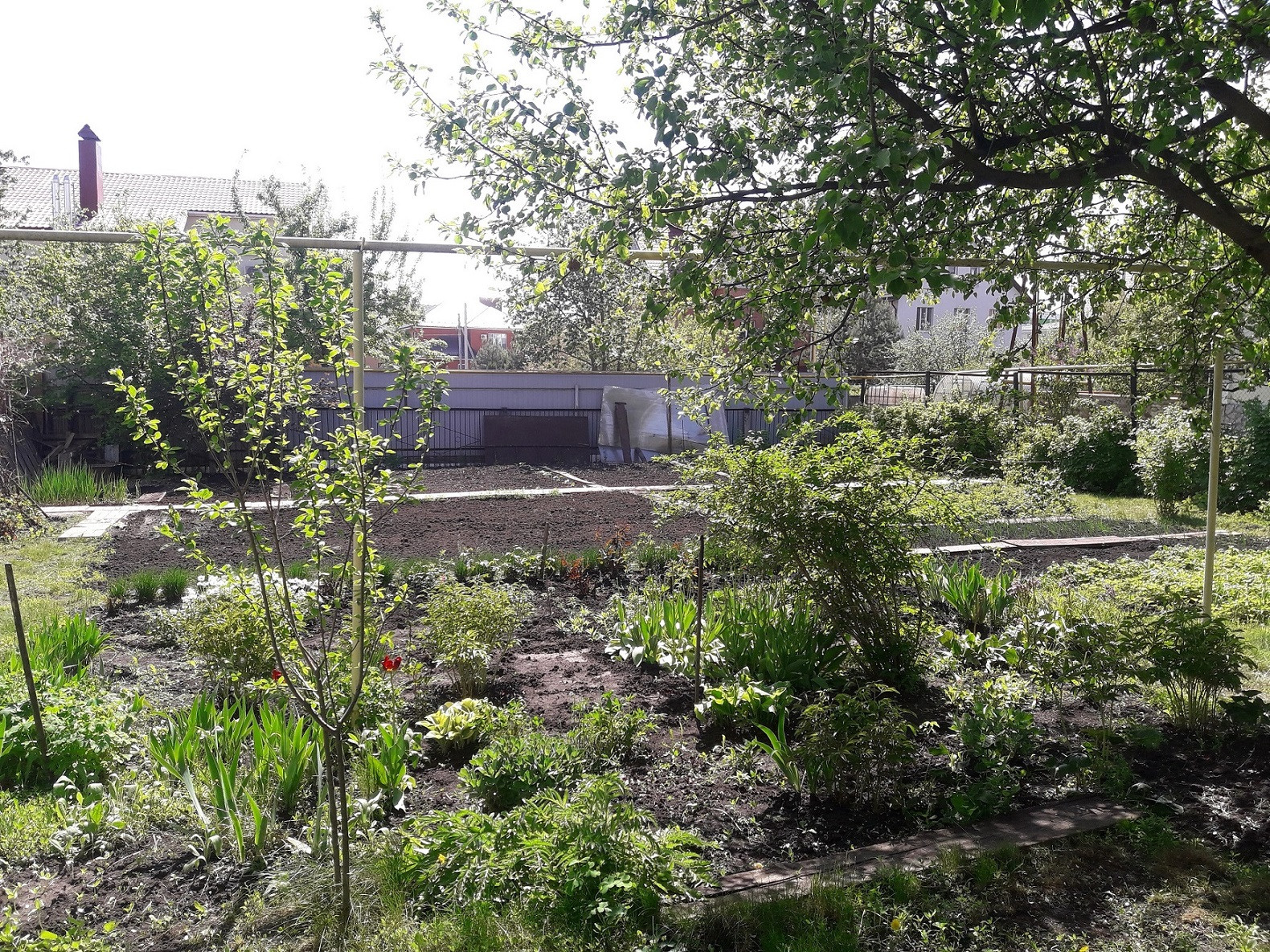По периметру участок огорожен забором из профлиста.