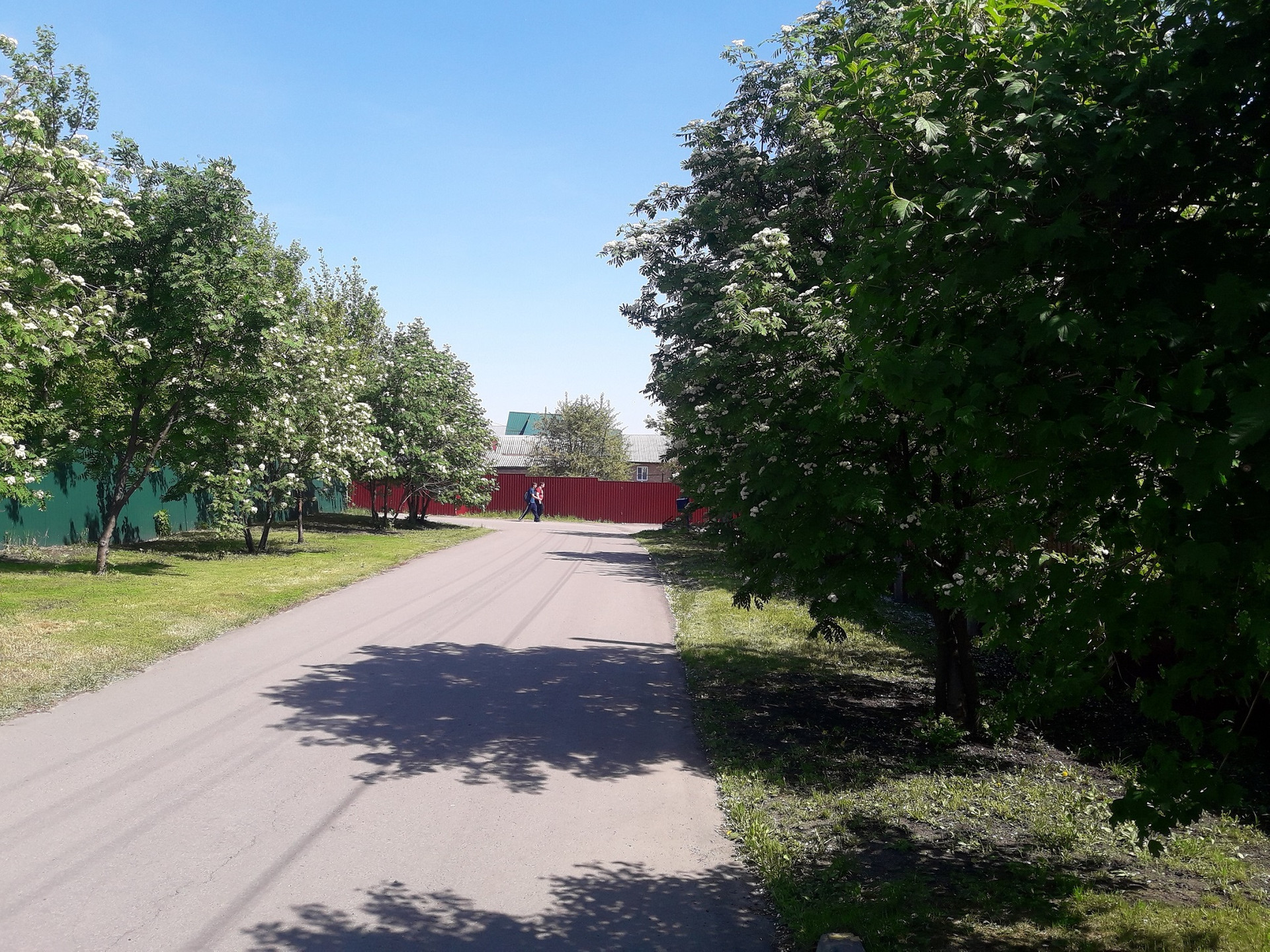 Вокруг дома и на участке проложены дорожки из плитки и асфальта.