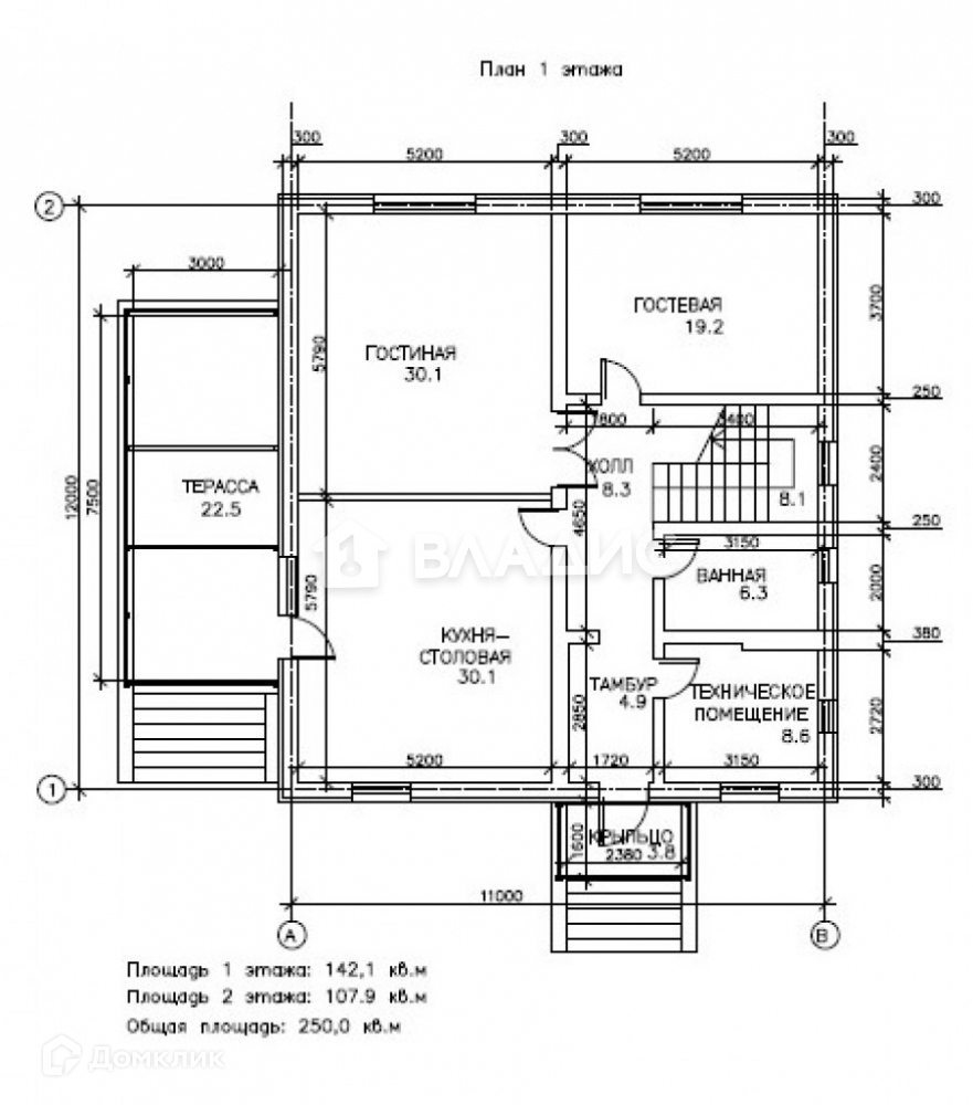 Общая площадь дома: 250 кв.м.