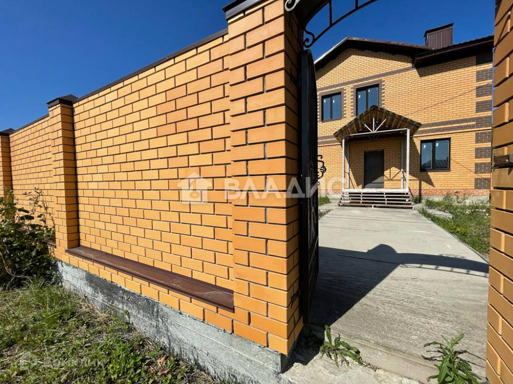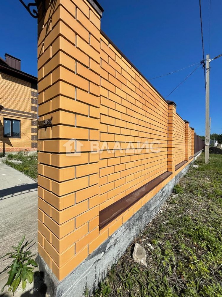 Территория огорожена забором из облицовочного кирпича на ленточном фундаменте.