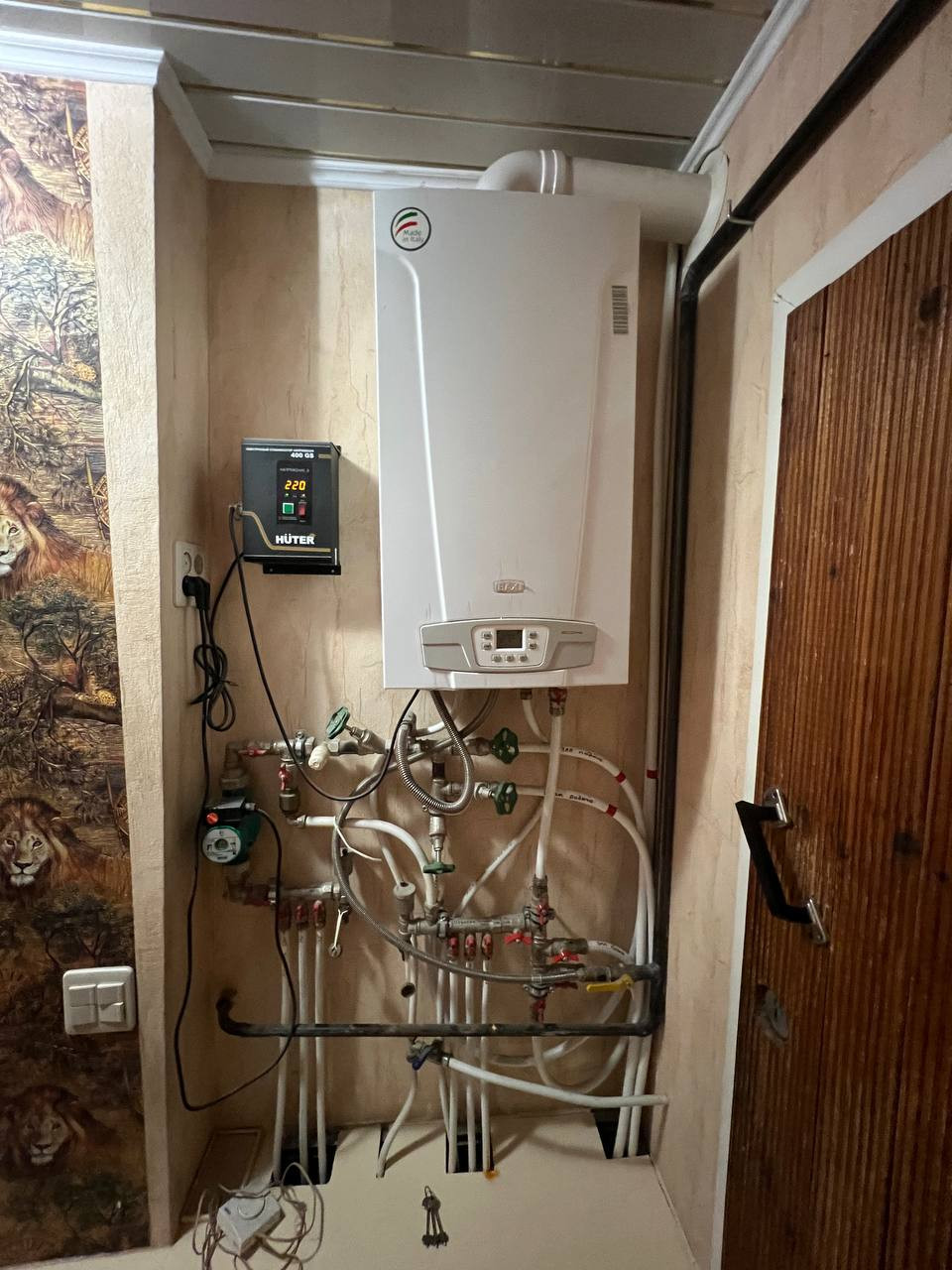 В самом доме: выровнены стены, заменена электрическая проводка, разведено новое отопление, установлен новый двухконтурный котел со стабилизатором напряжения, полностью отремонтирована ванная комната.