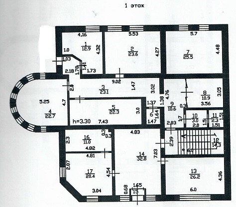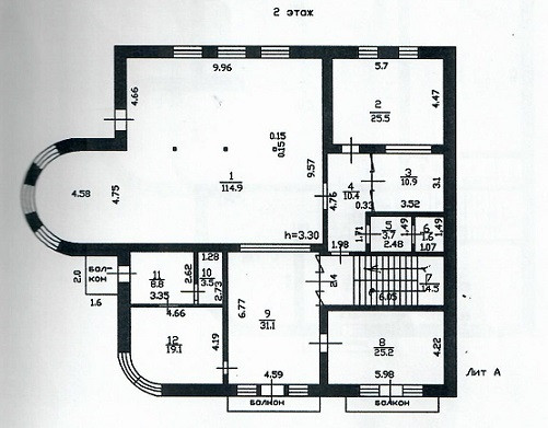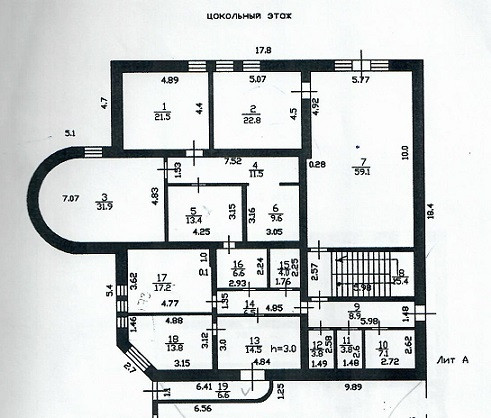 Площадь каждого этажа разделена на комнаты, площадью от 14 до 60 кв. м. и обустроена санузлами.