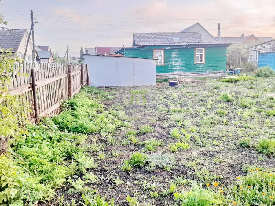 Участок размежёван, два собственника. Участок ровный, правильной формы. На территории располагается: сарай, металлический гараж, участок огорожен деревянным штакетникам.