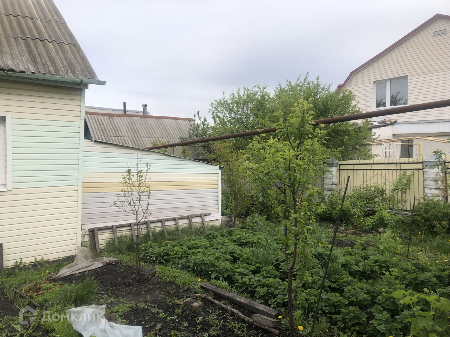 На участке малина, смородина, вишня, яблони. Участок ровный, без уклона.