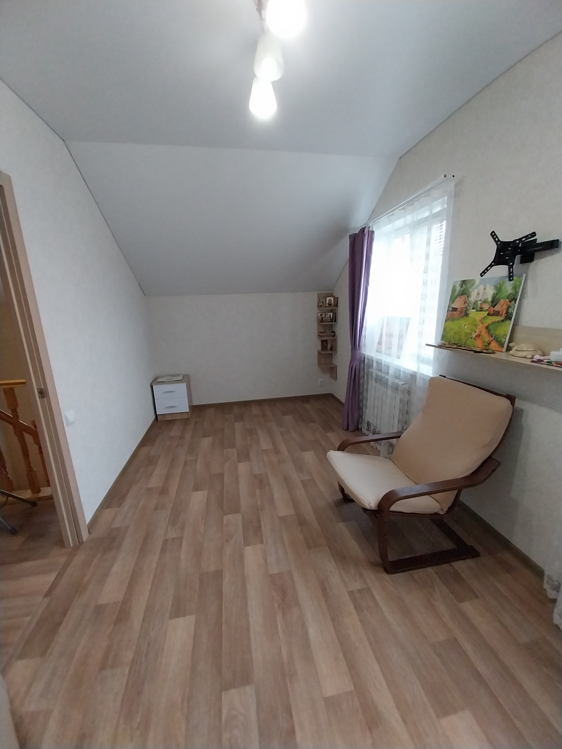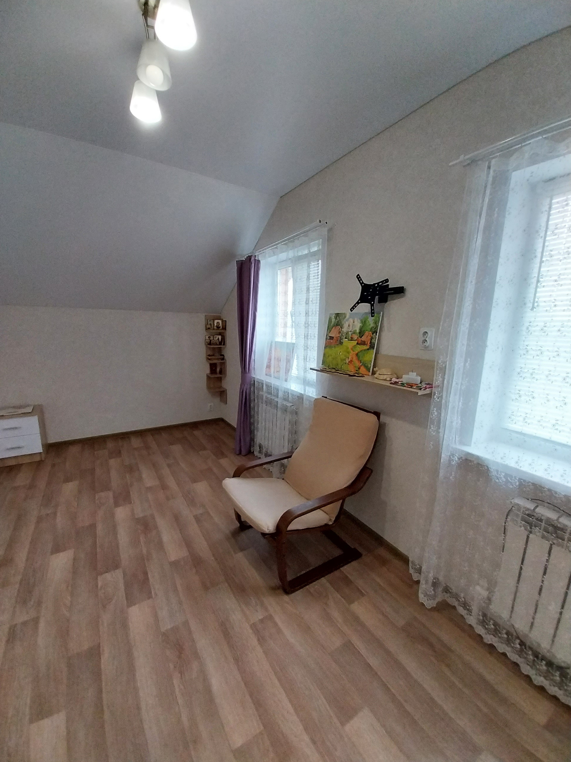 Кровля металлочерепица. Лестница из массива дерева, под лестницей отличная вместительная кладовая.