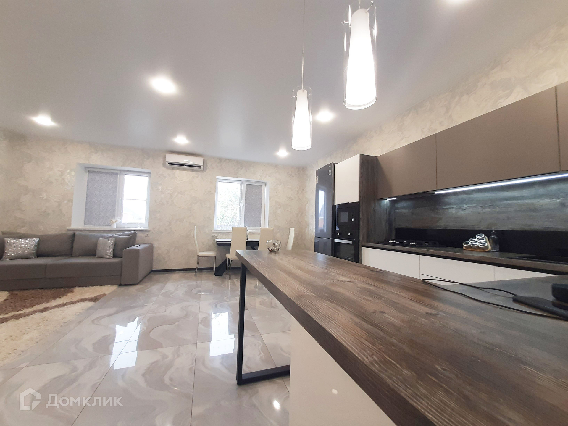 ВЫПОЛНЕН СОВРЕМЕННЫЙ РЕМОНТ: пол 1 этажа - широкоформатная плитка, 2 этаж - ламинат, современные обои, натяжные потолки, светодиодное освещение.