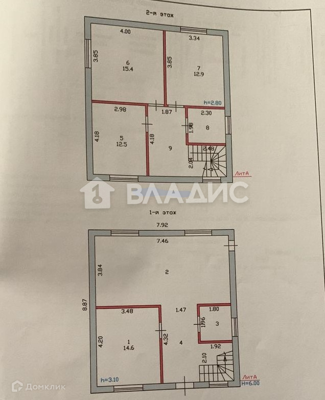 Высота потолков первого этажа 3 метра; высота потолков второго этажа 2,90 м.