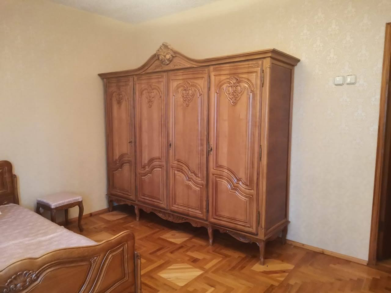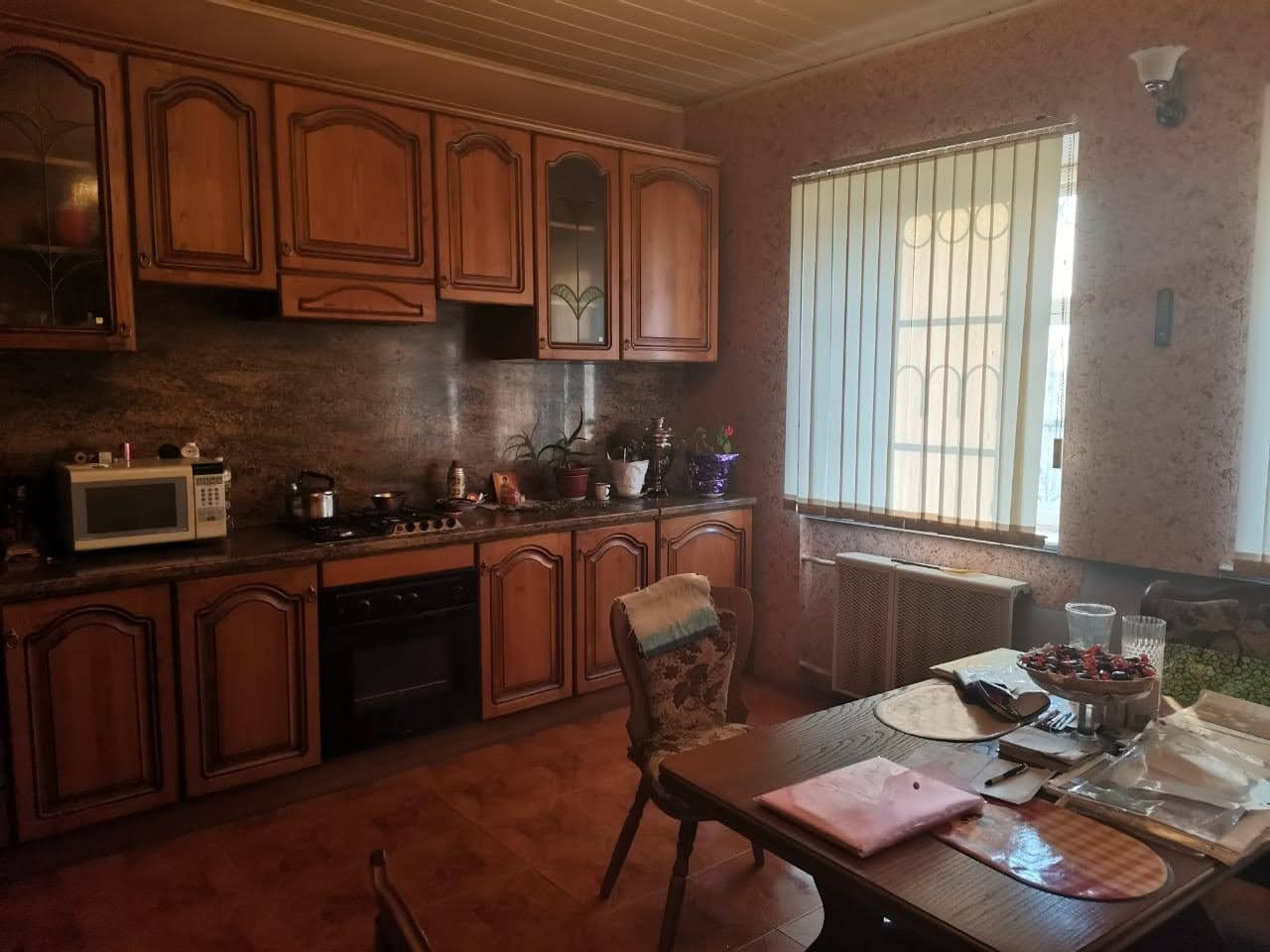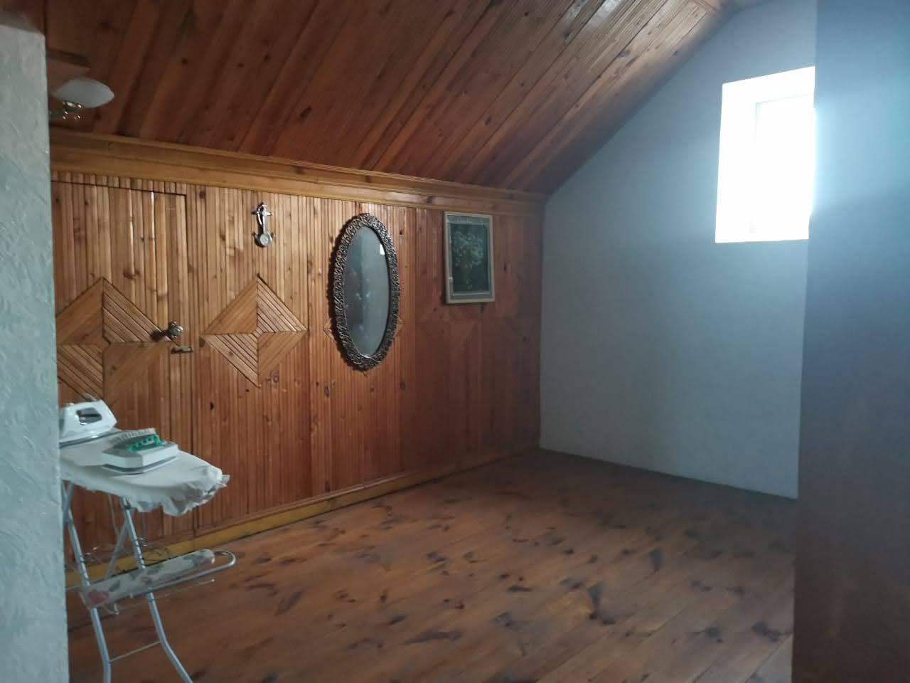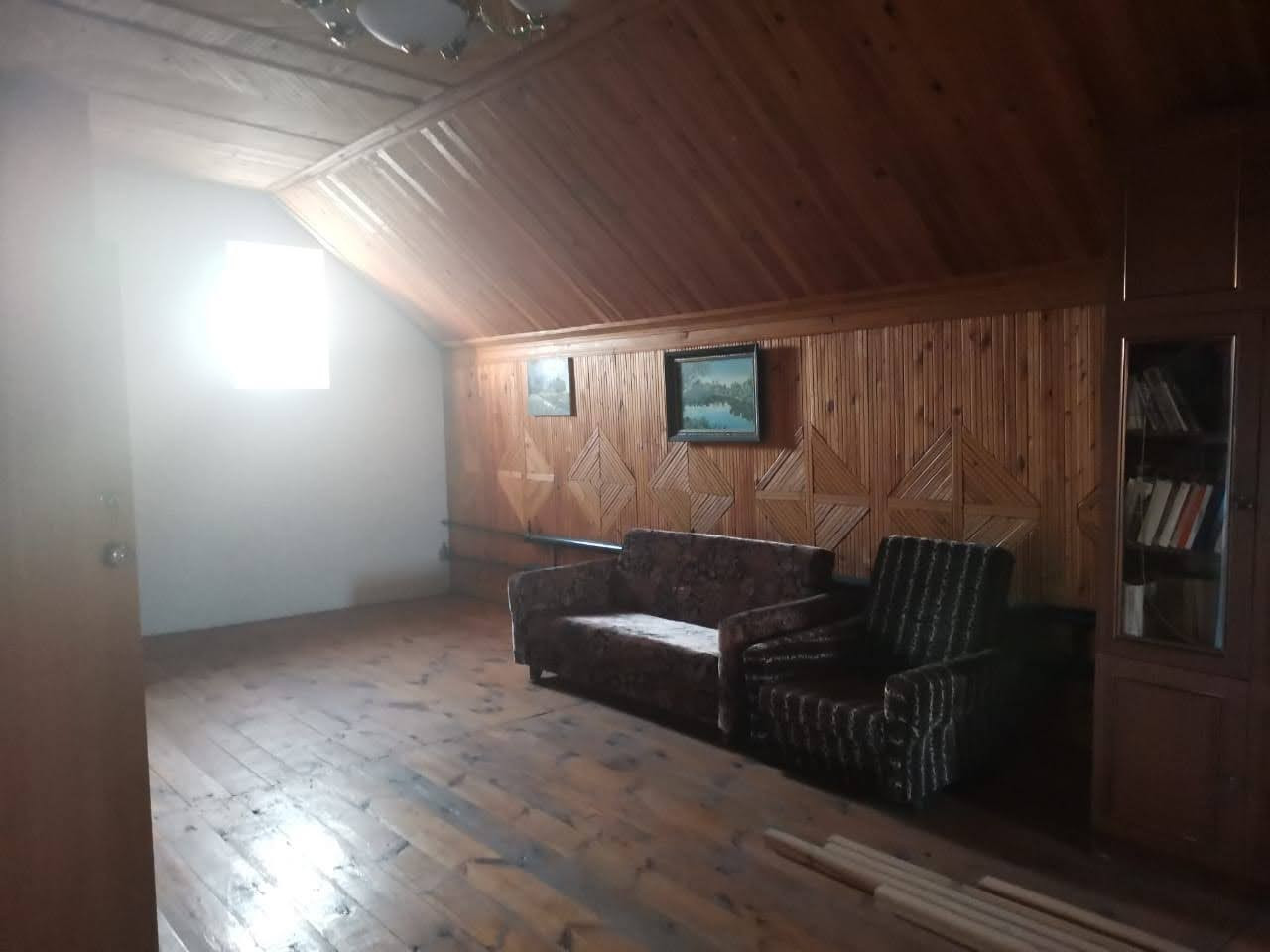 6. Внутри жилой дом обшит гипсокартонном, поклеены обои. На полу наборный паркет, лакирован. Высота потолков 3,2 м., потолки обшиты гипсокартоном, покрашены. На кухне наборный потолок, спецматериал. Обставлен мебелью, коврами, современной бытовой техникой, имеется посуда, установлен телефон, стиральная машина, компьютер, 2 телевизора. Бытовые принадлежности все в подарок. На первом этаже есть потайная комната. Этаж чердака обшит наборной рейкой, лакирован. потолок чердака обшит наборной рейкой.