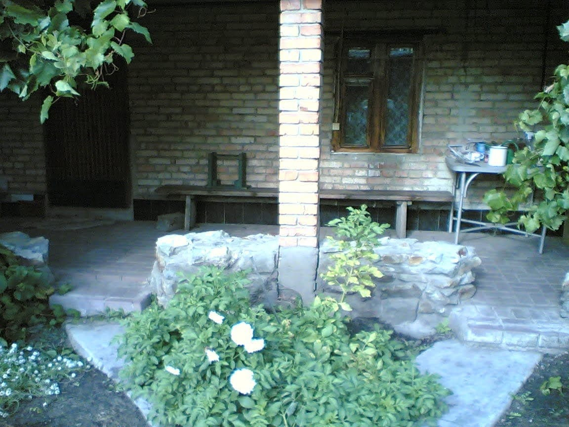 7. Снаружи дом обложен пенополистеролом для тепла, обшит сеткой, шпаклеван, покрашен. Дом в три красных кирпича с половиной.