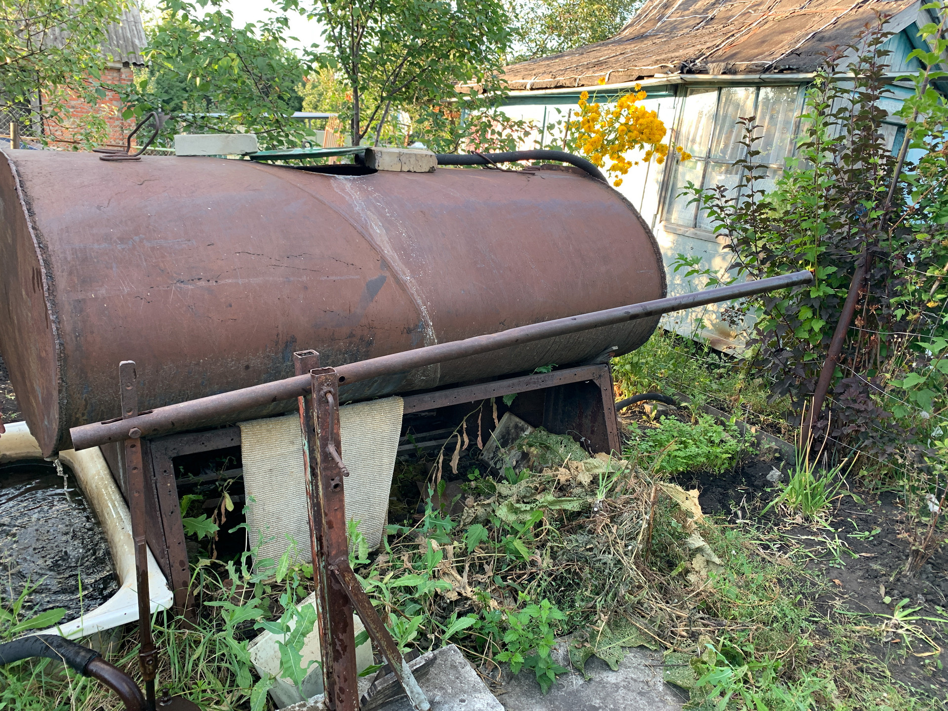 * вода сезонная (3 раза в неделю), имеется дополнительно скважина с качком и большая емкость для воды;