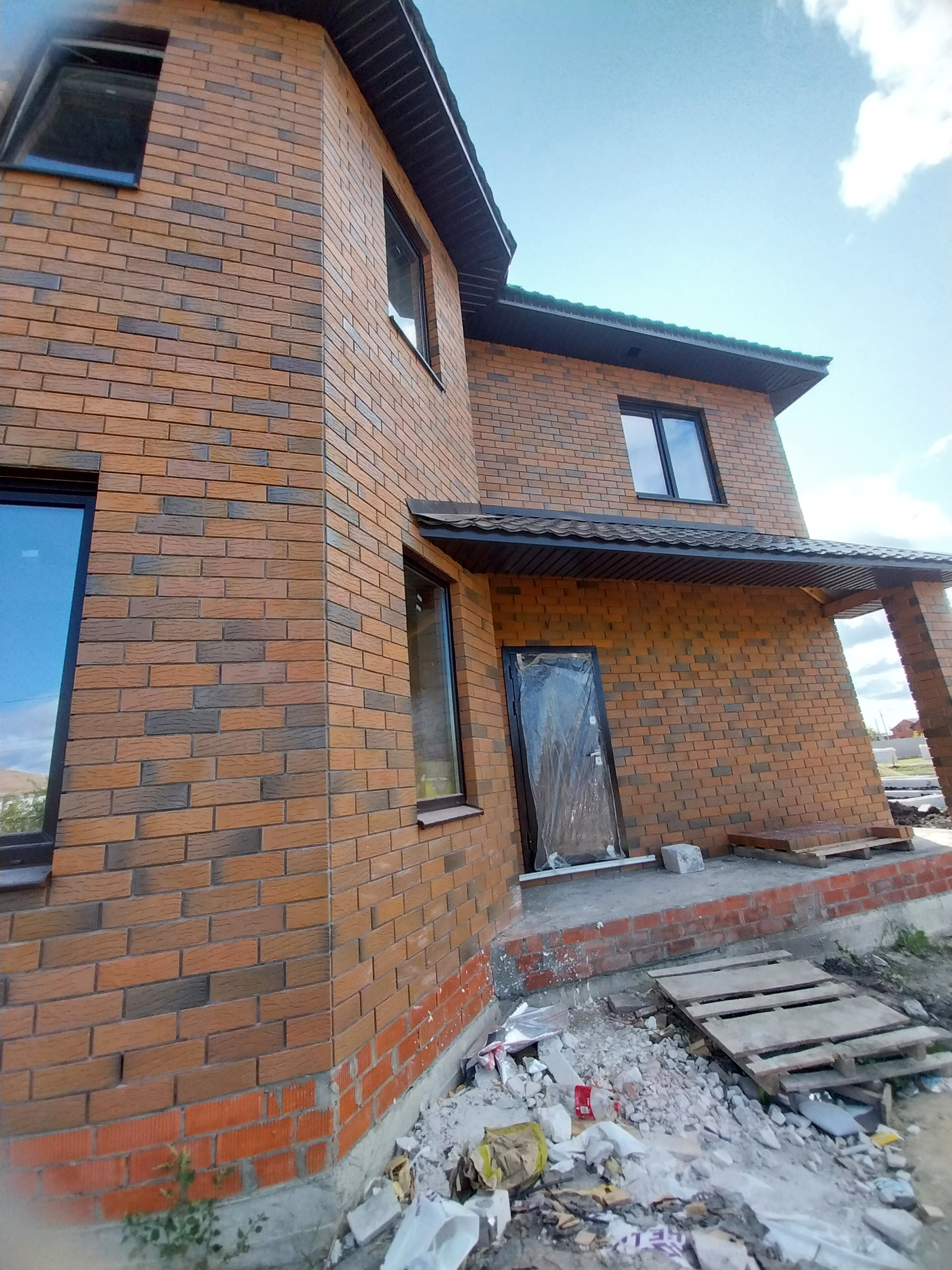Стены из газобетоноблок, облицовочный кирпич.