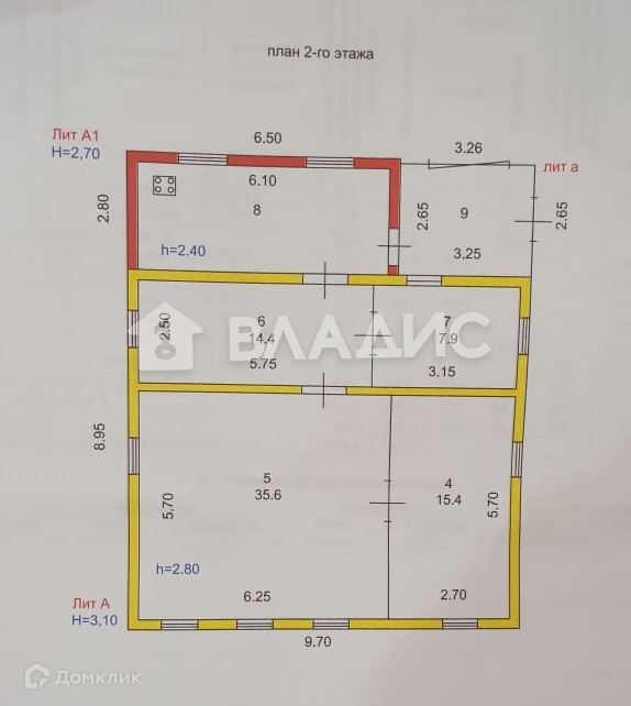 Высота потолков 2.8 м