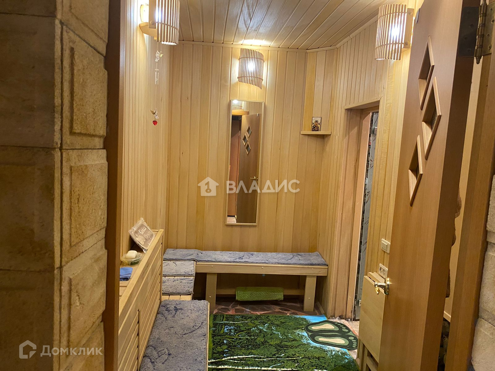 В доме 9 жилых комнат, 3 санузла, сауна, большой гараж на 2 машиноместа.  Дом в отличном состоянии, сделан хороший ремонт. Во всем доме установлены пластиковые окна.  На полу плитка, паркет, линолеум и ламинат. Санузел в кафеле нового образца, новая сантехника, установлены все приборы учета. Качественные межкомнатные двери. Водоснабжение центральное, газ (отопительные котлы), канализация - центральная.