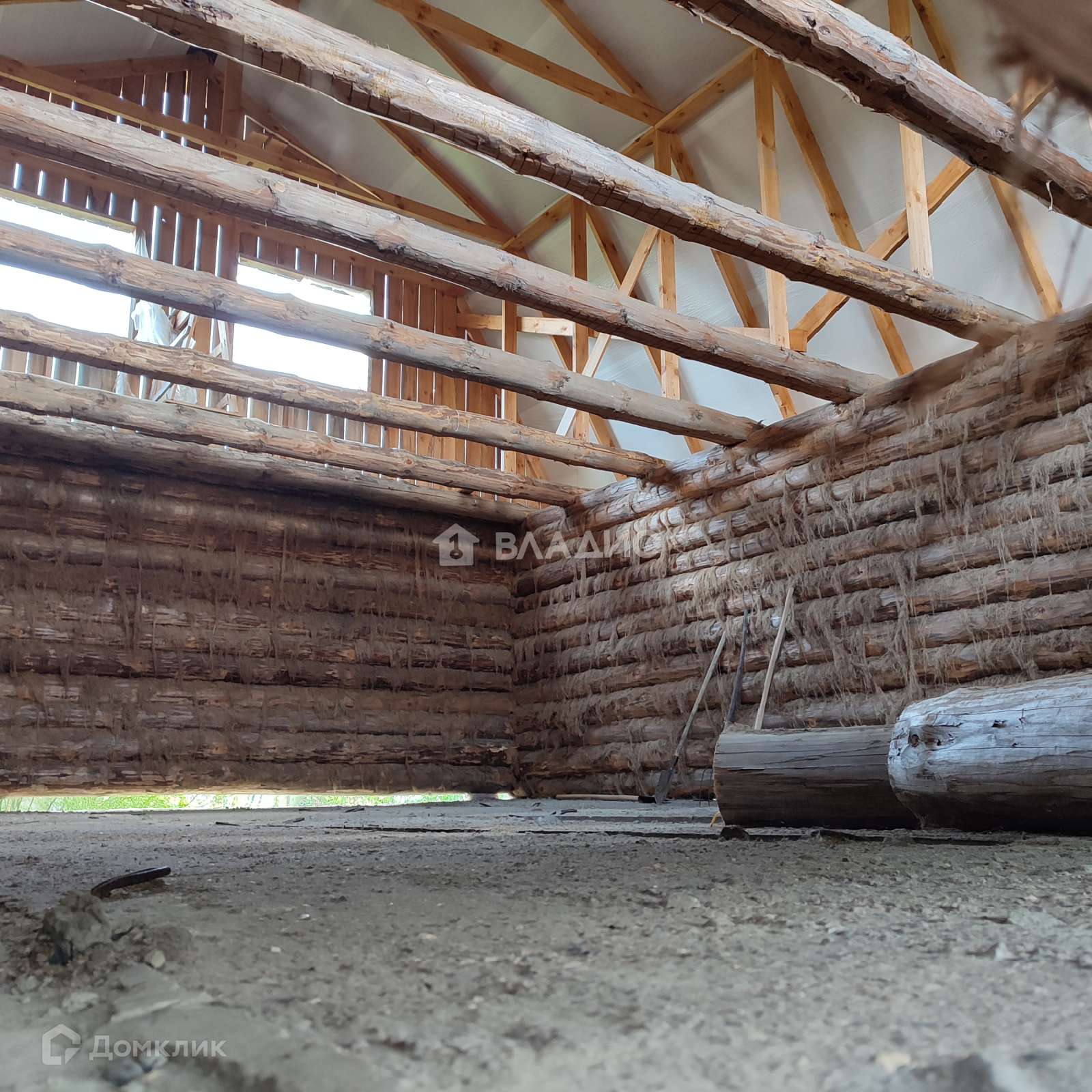 На участке построен просторный дом –  сосновый сруб 8×10 на надёжном фундаменте, и плиты перекрытия первого этажа. Такой экологически чистый дом – редкость в наше время, когда всё строят в основном из пеноблоков. Этот дом не требует внешней и даже внутренней отделки, в нём легко дышится, тепло зимой и прохладно летом.