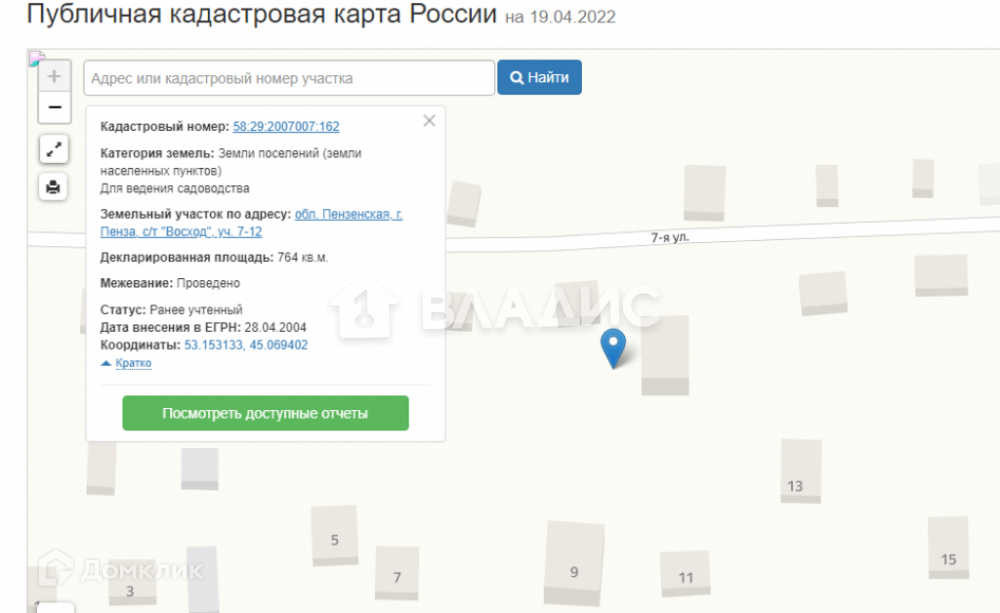 Площадь участка 8 сот.