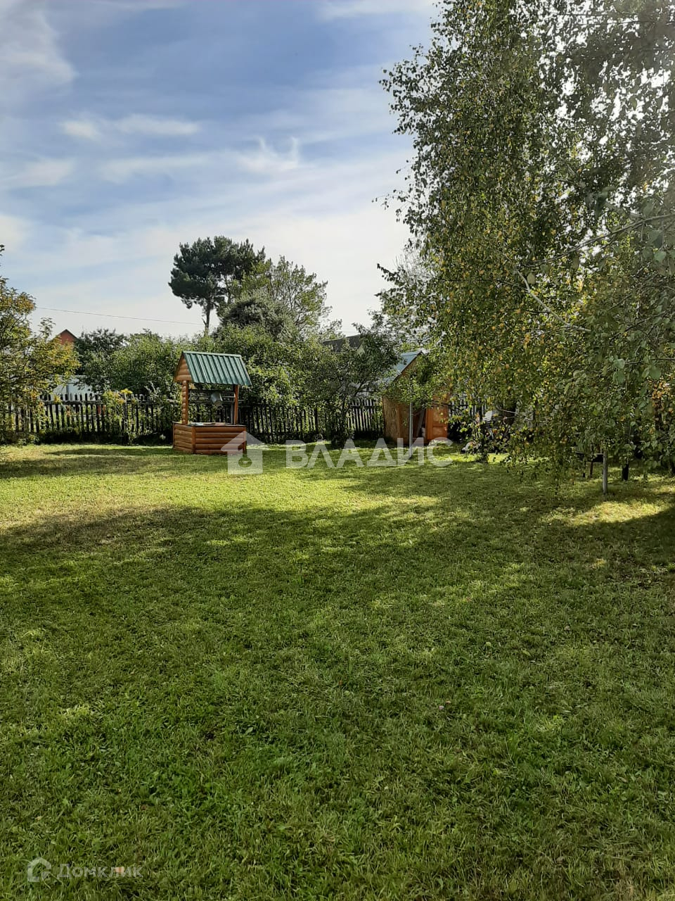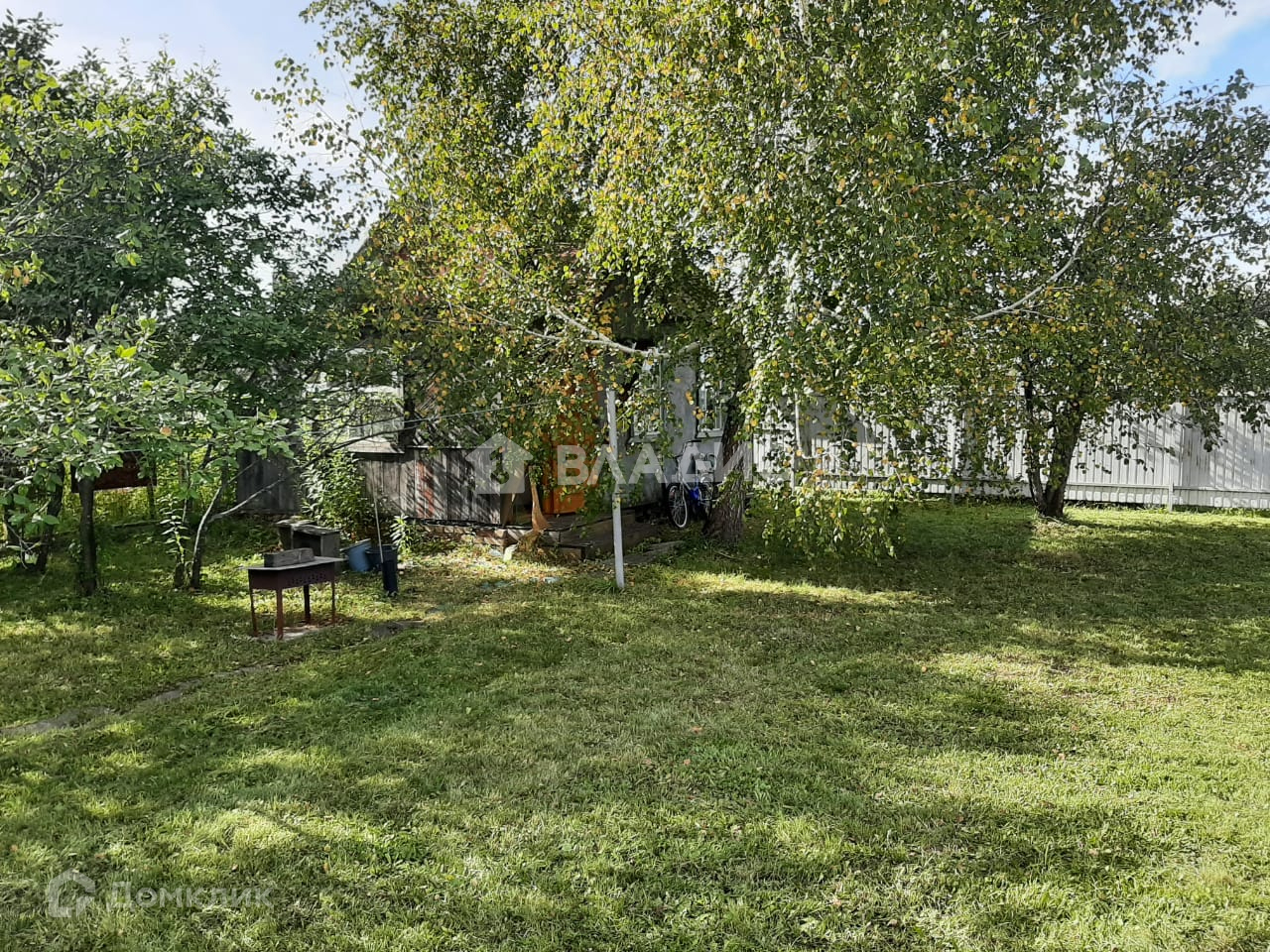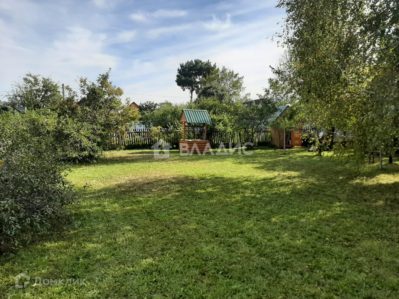 Полностью огорожен забором. Также есть множество садовых насаждения.
