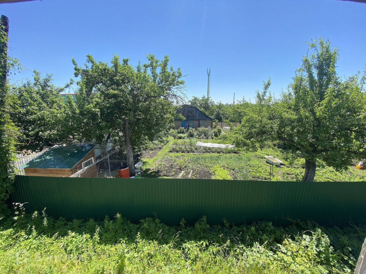 Электричество заведено в дом, на участке колонка, есть бак для воды для полива.