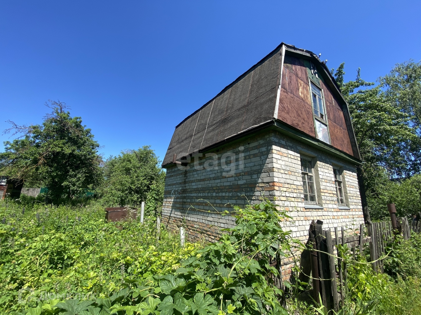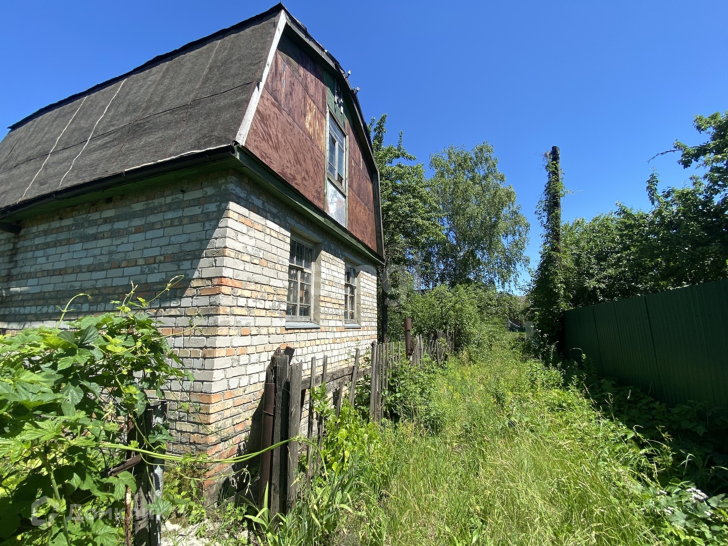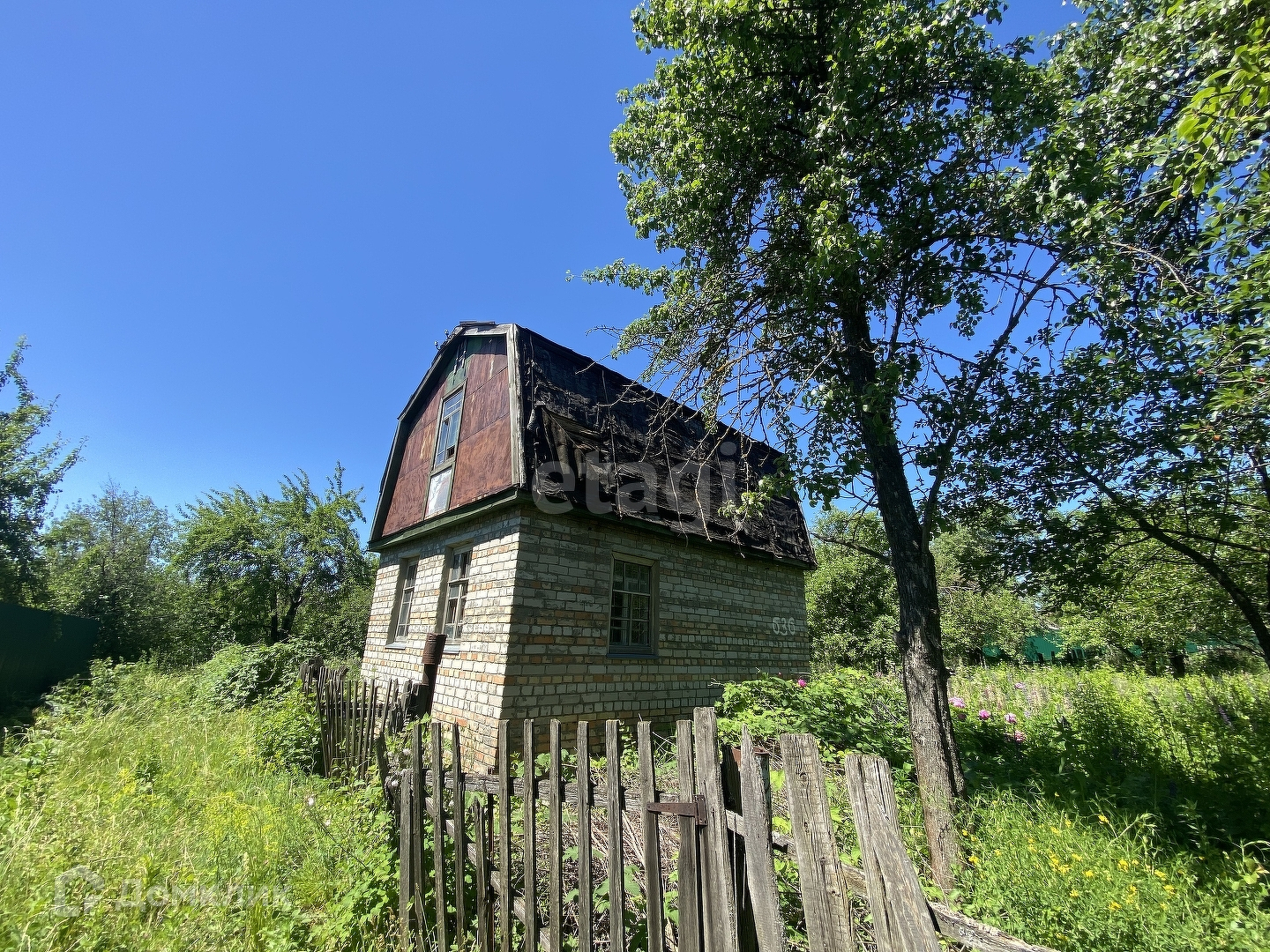 На данный момент на участке есть двухэтажный кирпичный дом, требующий ремонта. Площадь дома 24 квадратных метра.