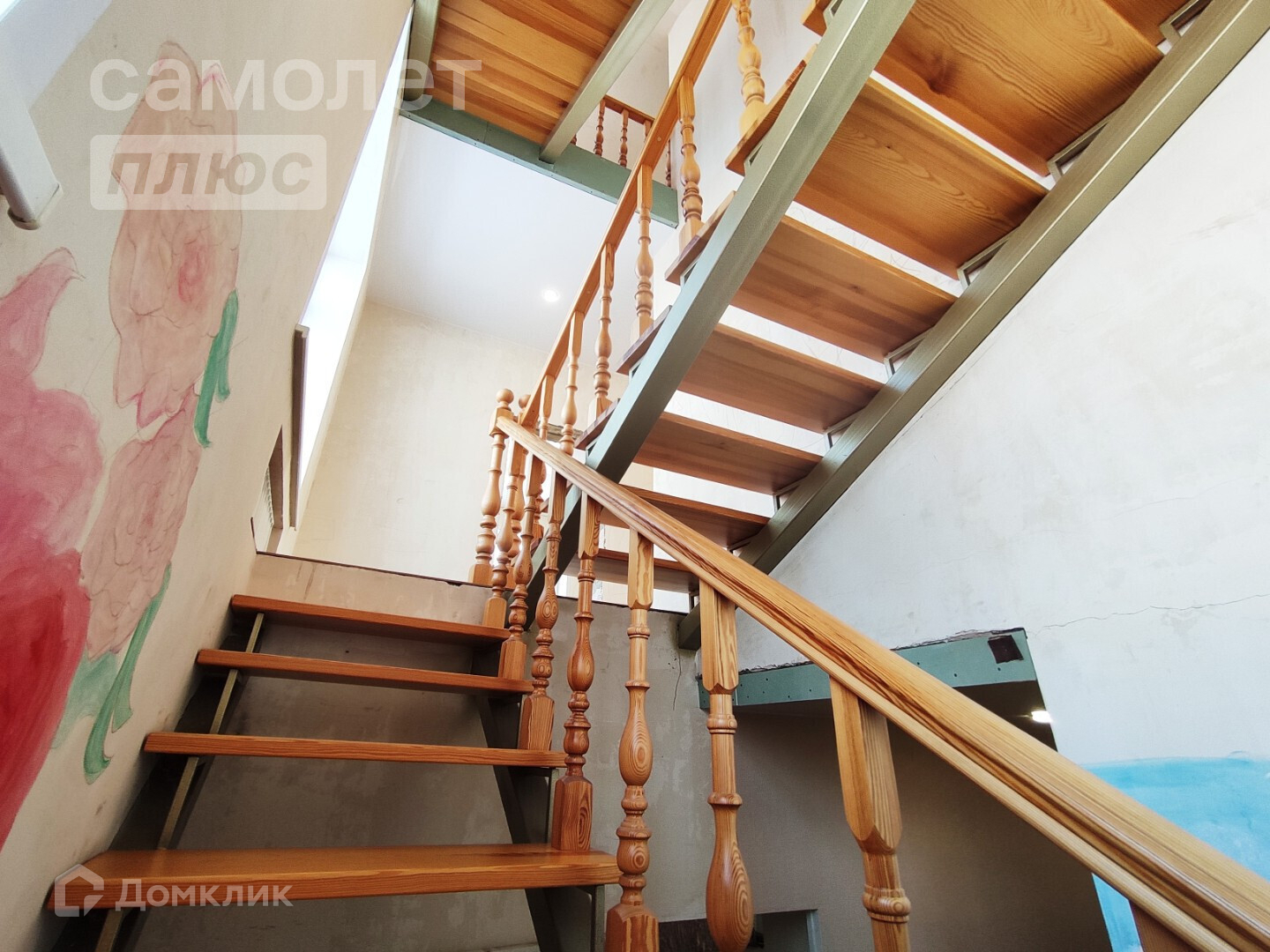 - на второй этаж ведет лестница из натурального дерева