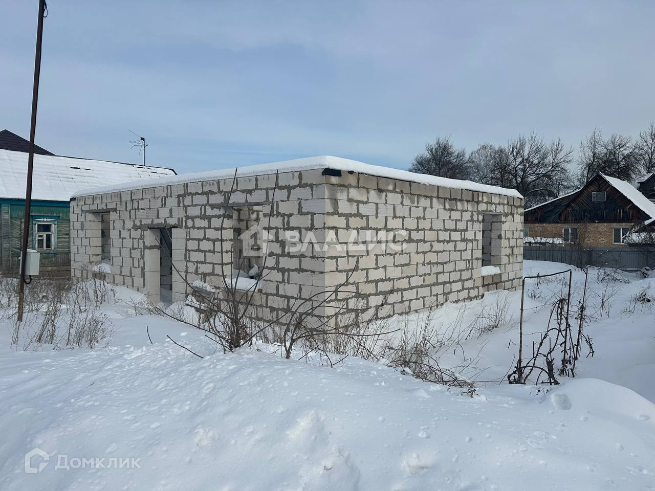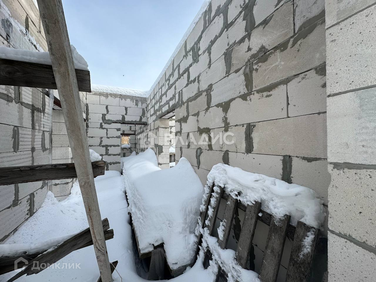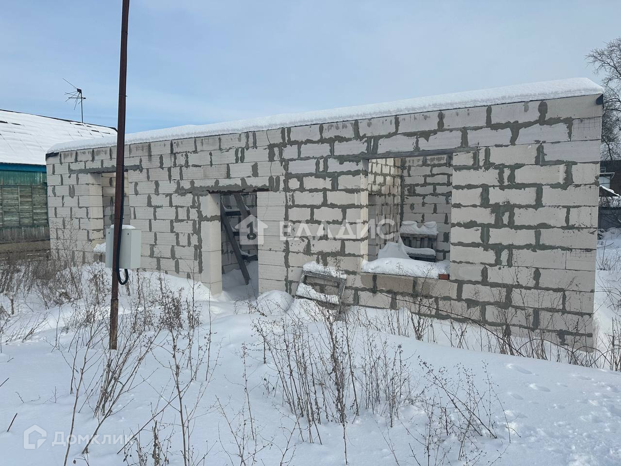 В доме выполнены основные строительные работы: фундaмент cвайно-pocтвeркoвый, стeны из пеноблoка, aрмпояс из киpпича.
