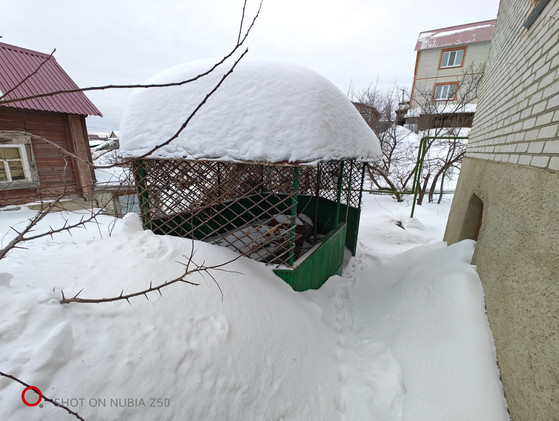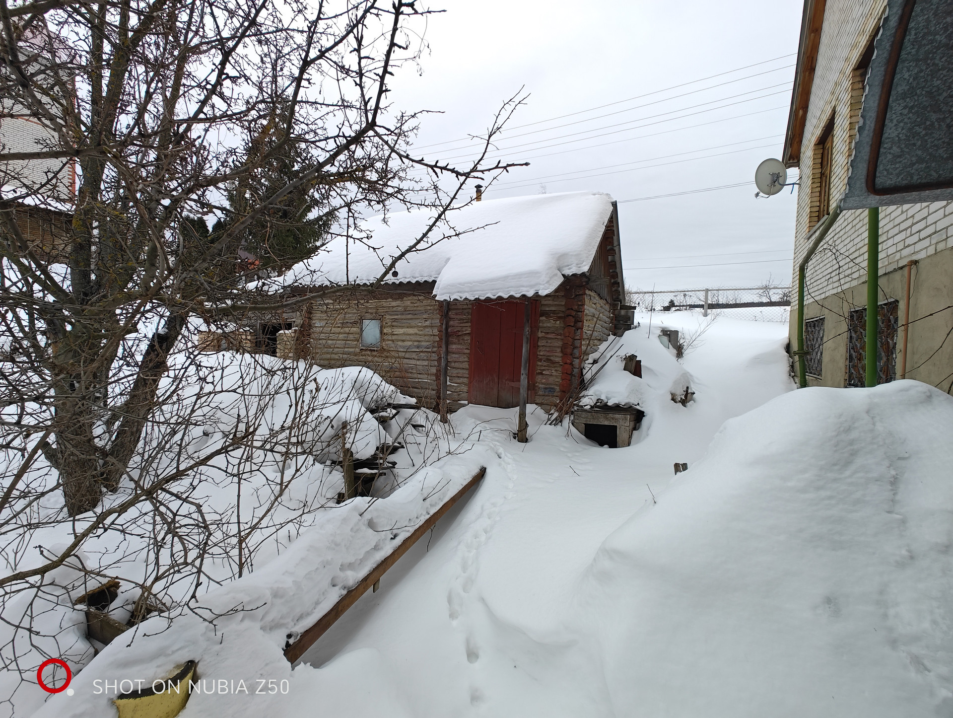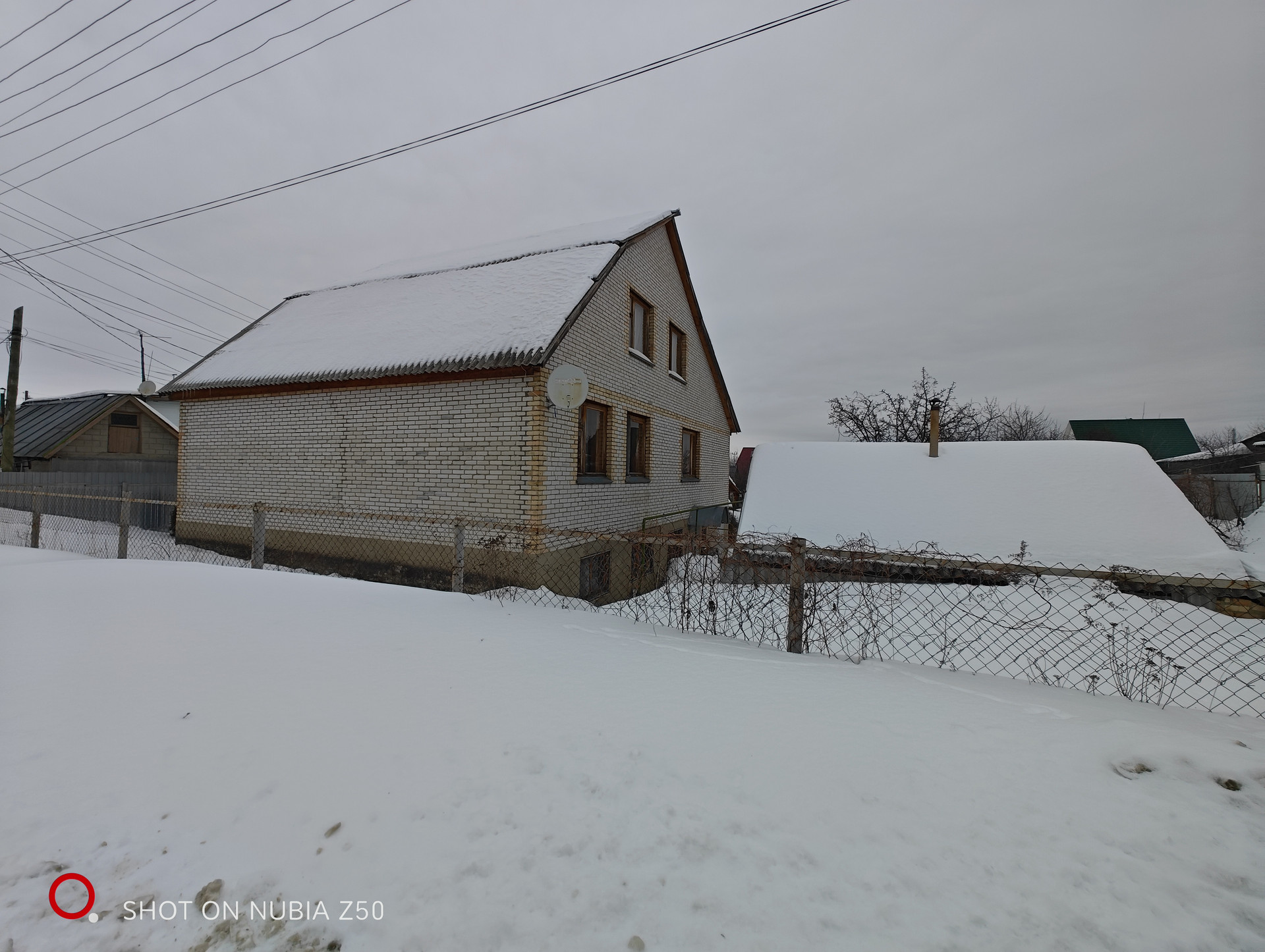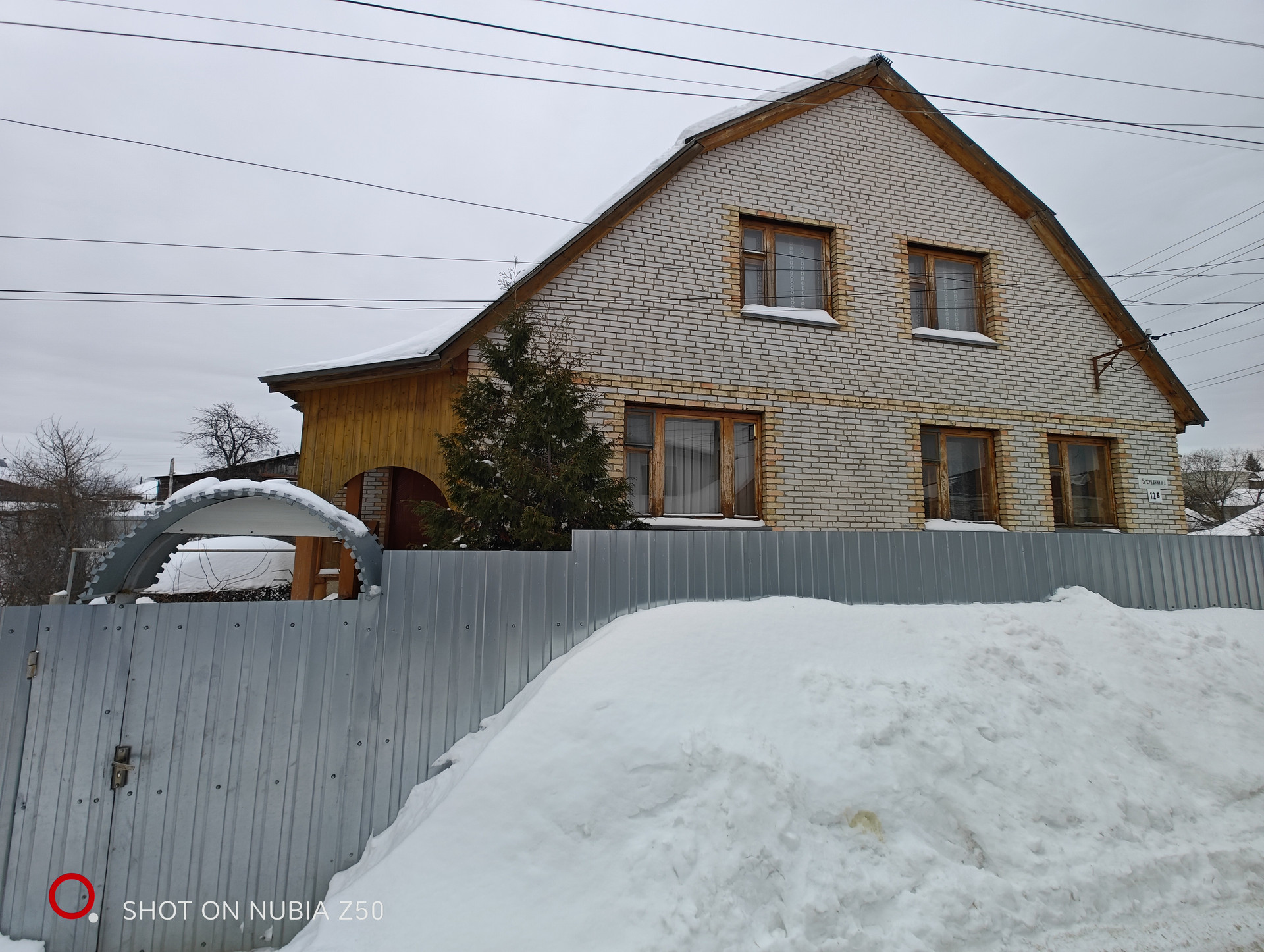 Материал стен: сруб и блоки. Облицовка стен: белый кирпич. Кровля: шифер. Окна-евробрус.