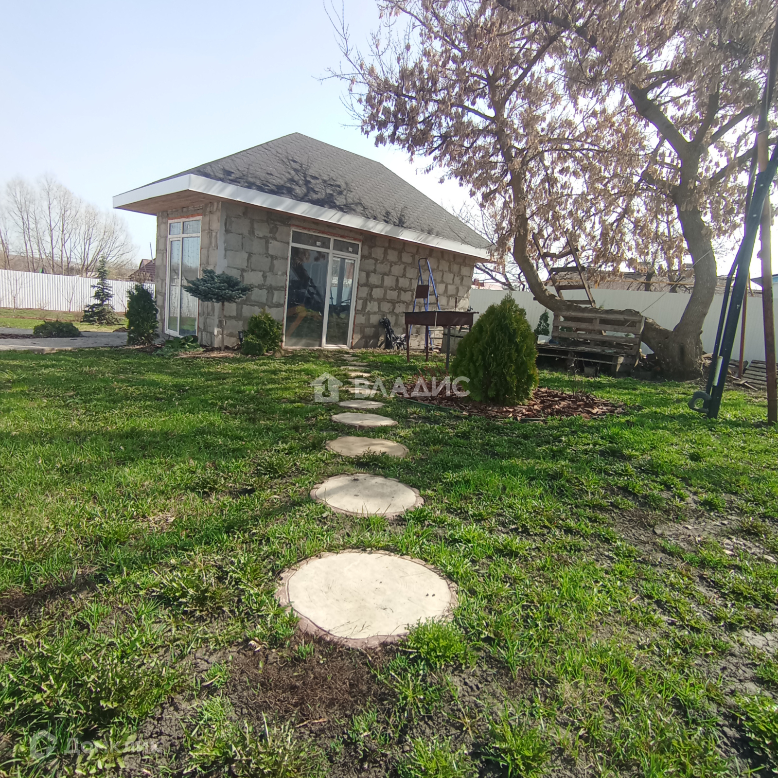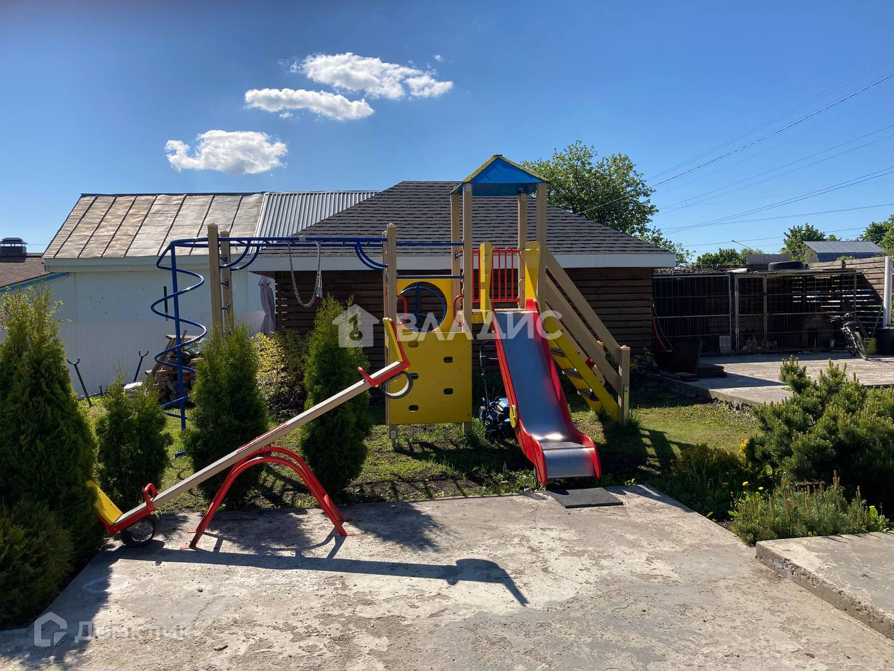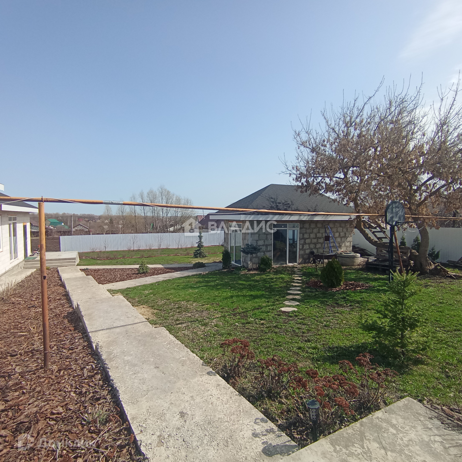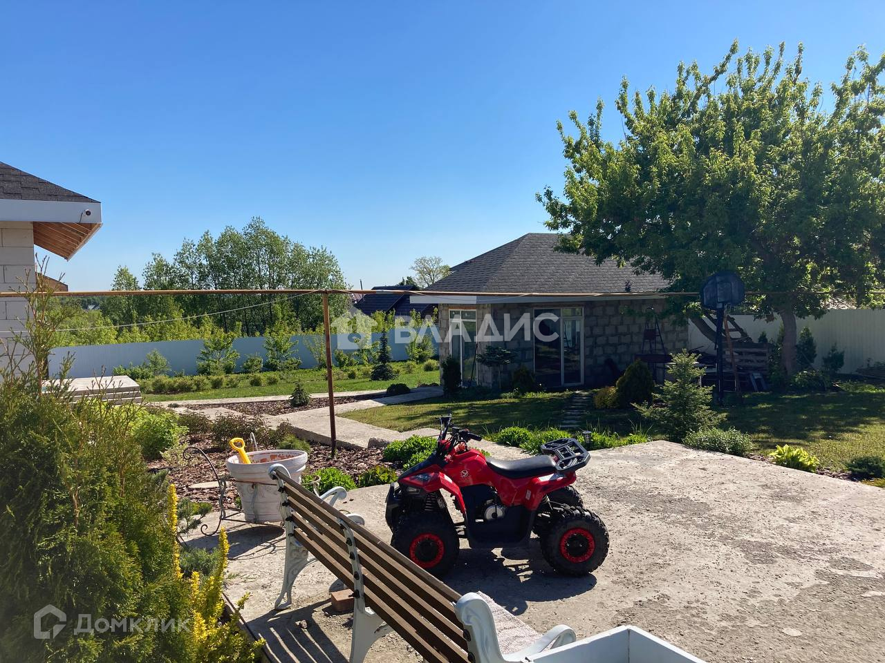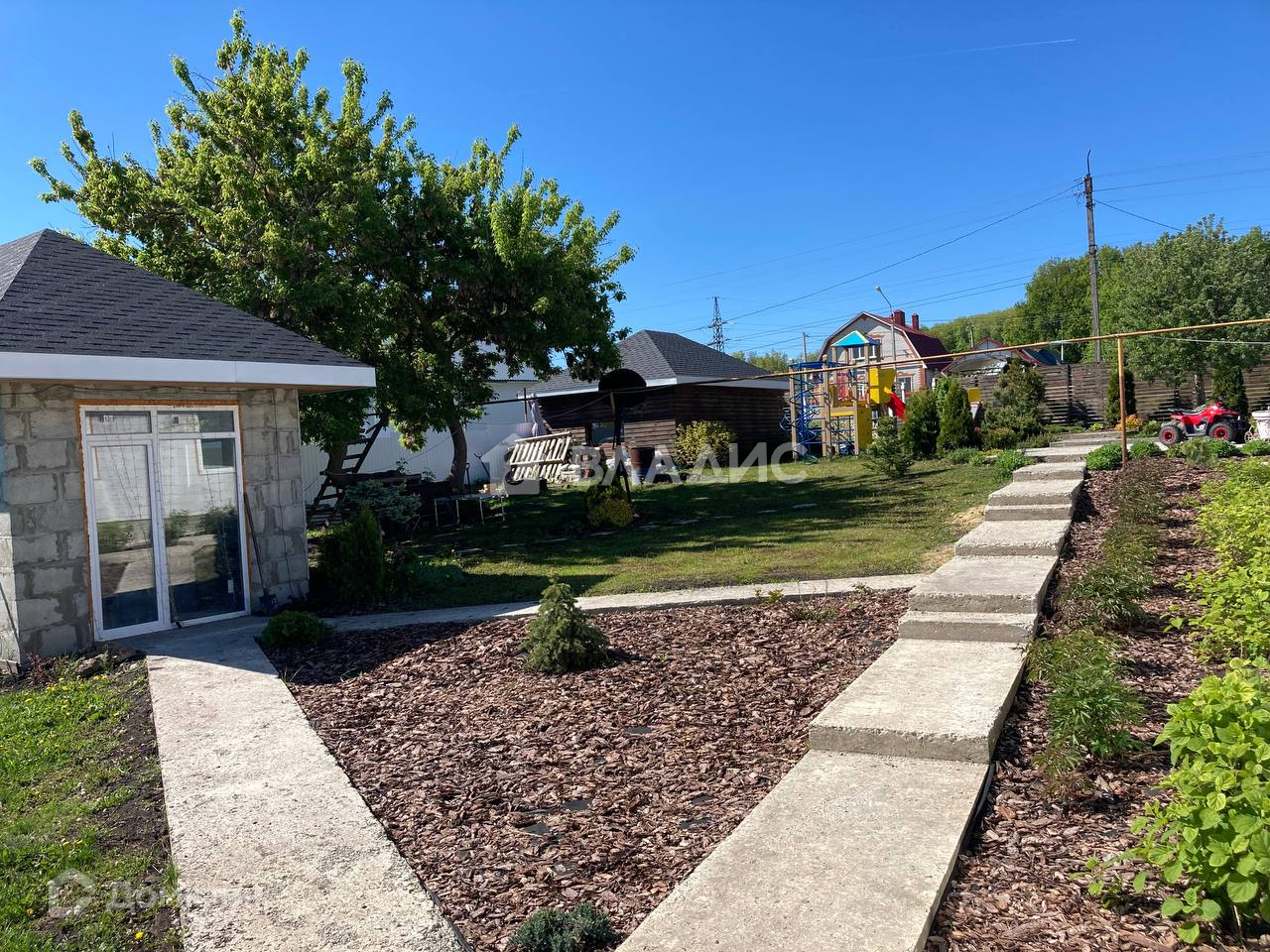 Отдельностоящая закрытая беседка, холодный гараж для хранения инвентаря. Участок ухожен, грамотно распланирован по зонам. плодовый молодой сад, много декоративных растений. Бетонные дорожки, площадки. Детский комплекс КСИЛ. Забор по всему периметру. Видеонаблюдение.