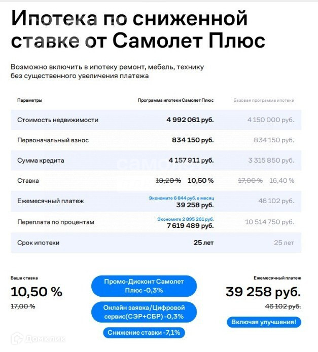 Расчет на ипотечном калькуляторе ONREALT.RU приблизительный, он не учитывает возможных дополнительных платежей. Точный расчет, условия ипотечных программ, срок, процентную ставку, график выплат и прочие особенности предоставляет банк при заключении договора об ипотечном кредитовании.