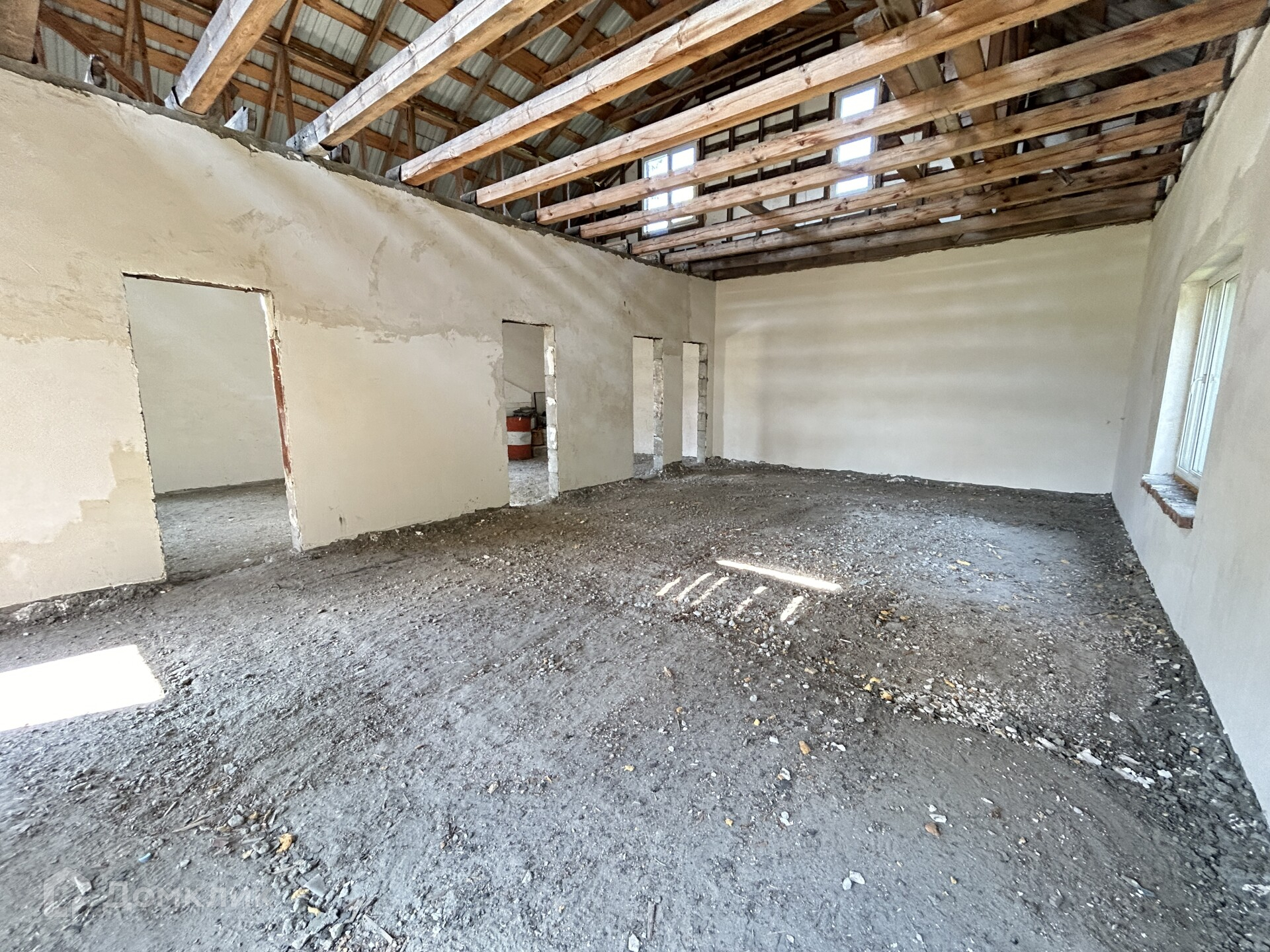 На первом этаже располагаются два просторных помещения свободной планировки с несколькими окнами, где вы можете разместить гардеробную, большую гостиную, кухню, ванную комнату.