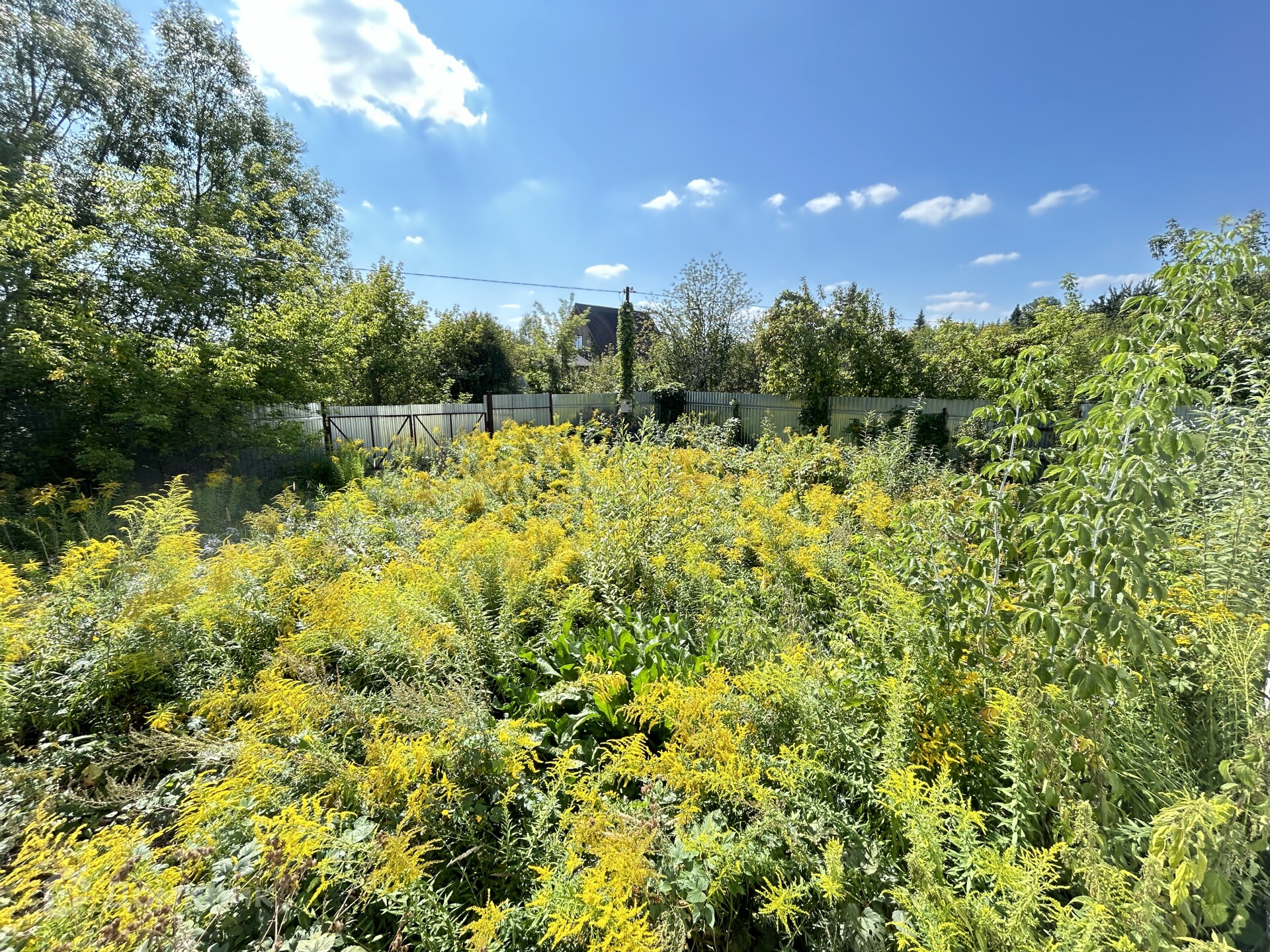 Участок угловой - 11 соток, ровный, огорожен профлистом с трёх сторон, с одной стороны калитка, с другой - ворота, широкая дорога у ворот. Соседи только с одной стороны участка.
