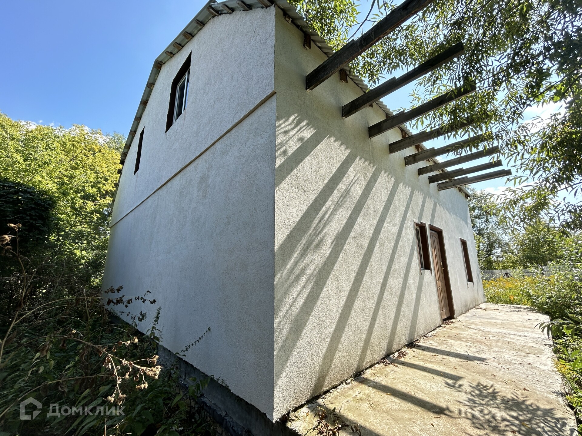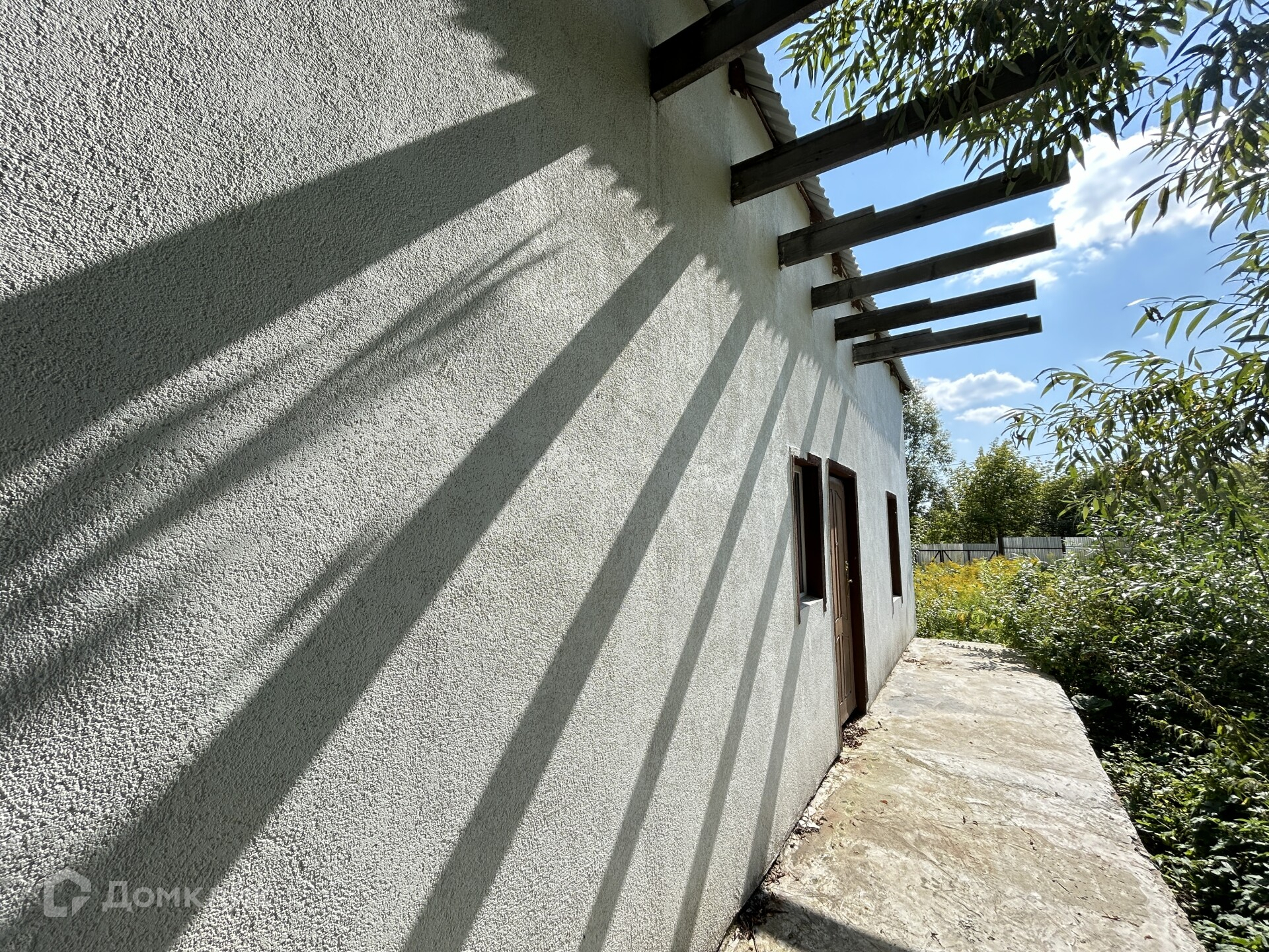 Дом каменный, из пеноблока, на ленточном фундаменте, утеплён, отделан декоративной штукатуркой и покрашен. Кровля - металлочерепица.