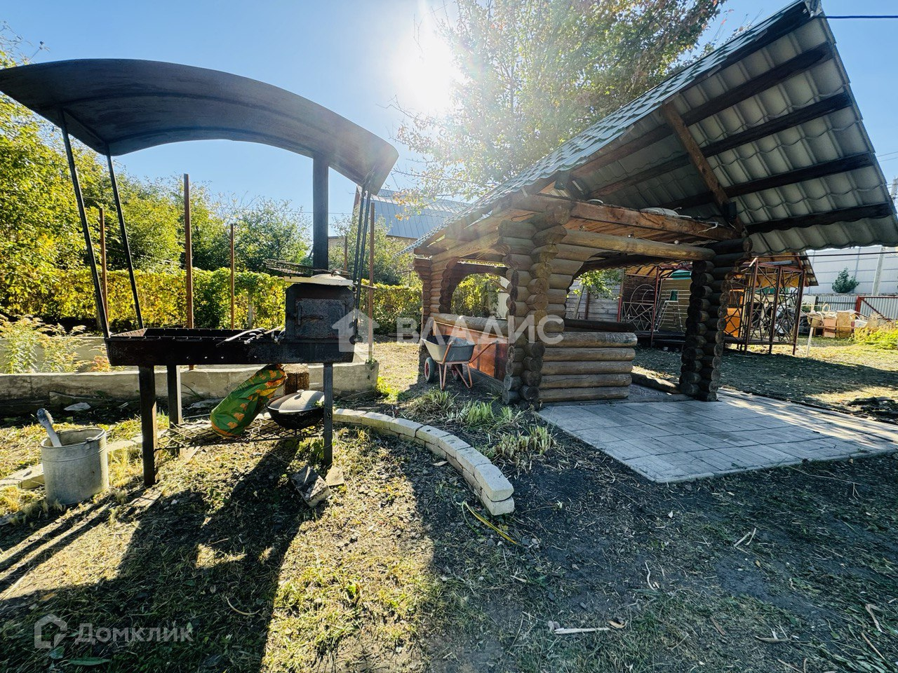 На участке есть новая беседка из сруба, баня, сарай, недостроенный бассейн.
