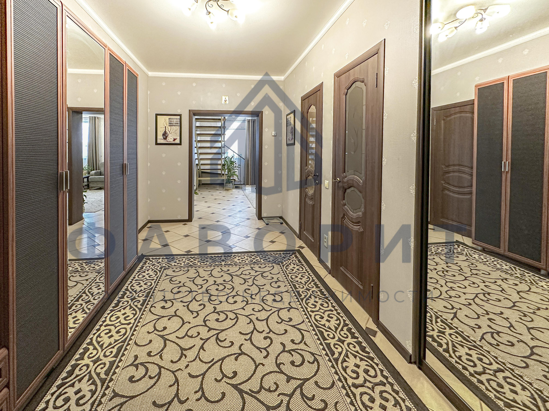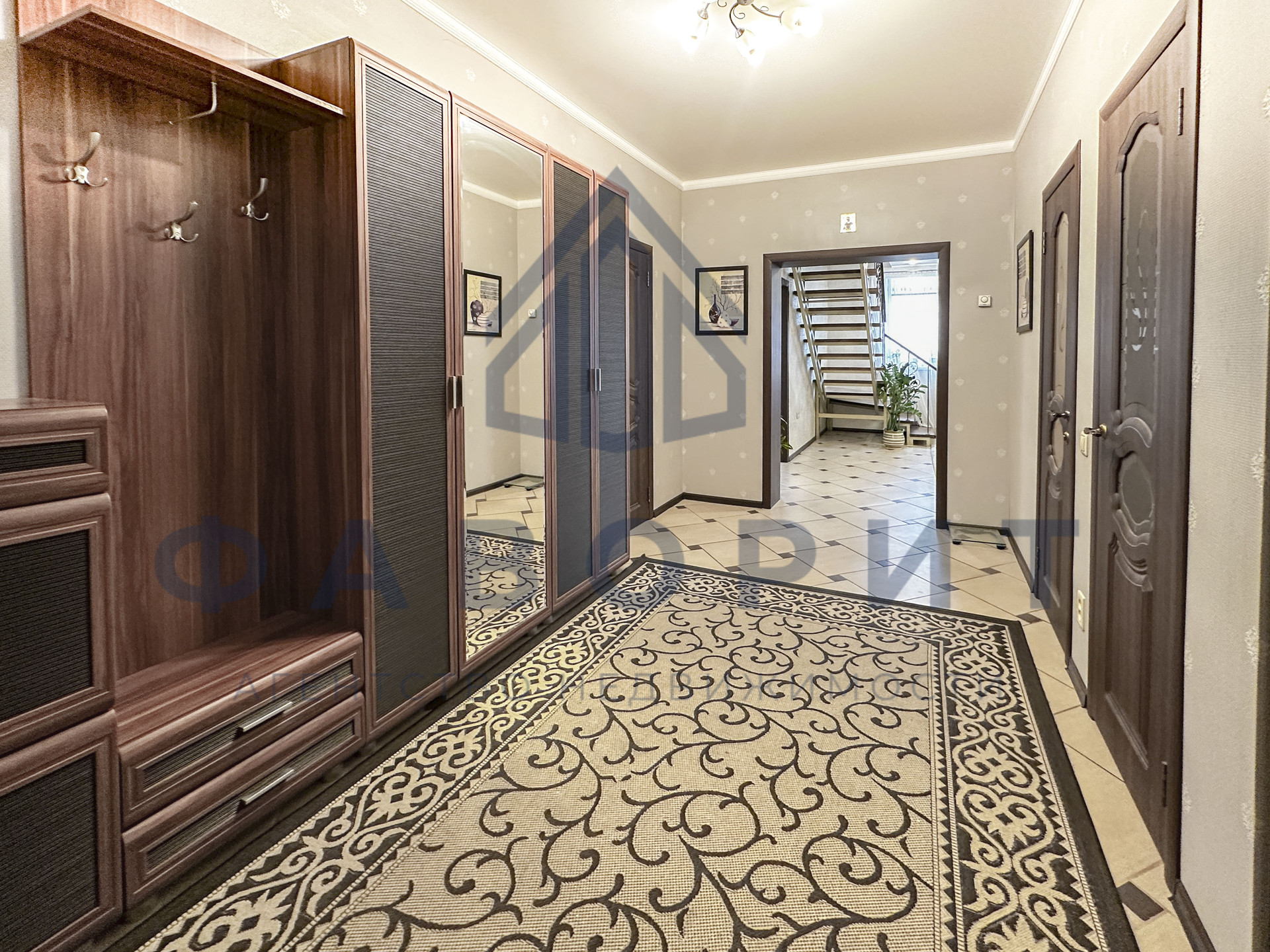 Просторный холл, где установлены два больших шкафа для всех ваших вещей. Выглядит все аккуратно, когда все вещи спрятаны и на своих местах.