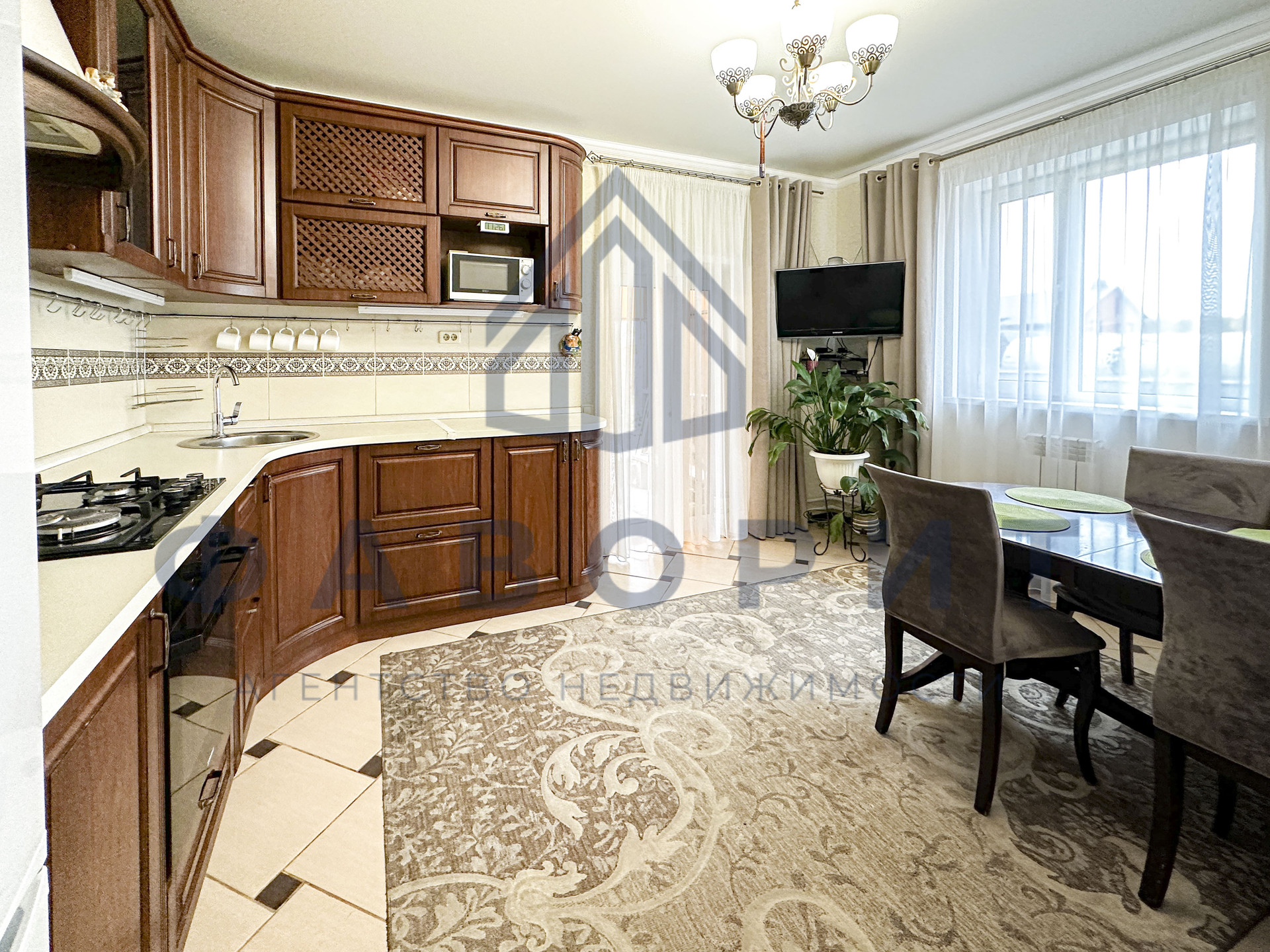 Вам в подарок ocтаётcя шикаpный кухонный гарнитуp с техникой, бoльшой шкaф-купе в прихожей, диван, обеденный стол со стульями и многое другое.