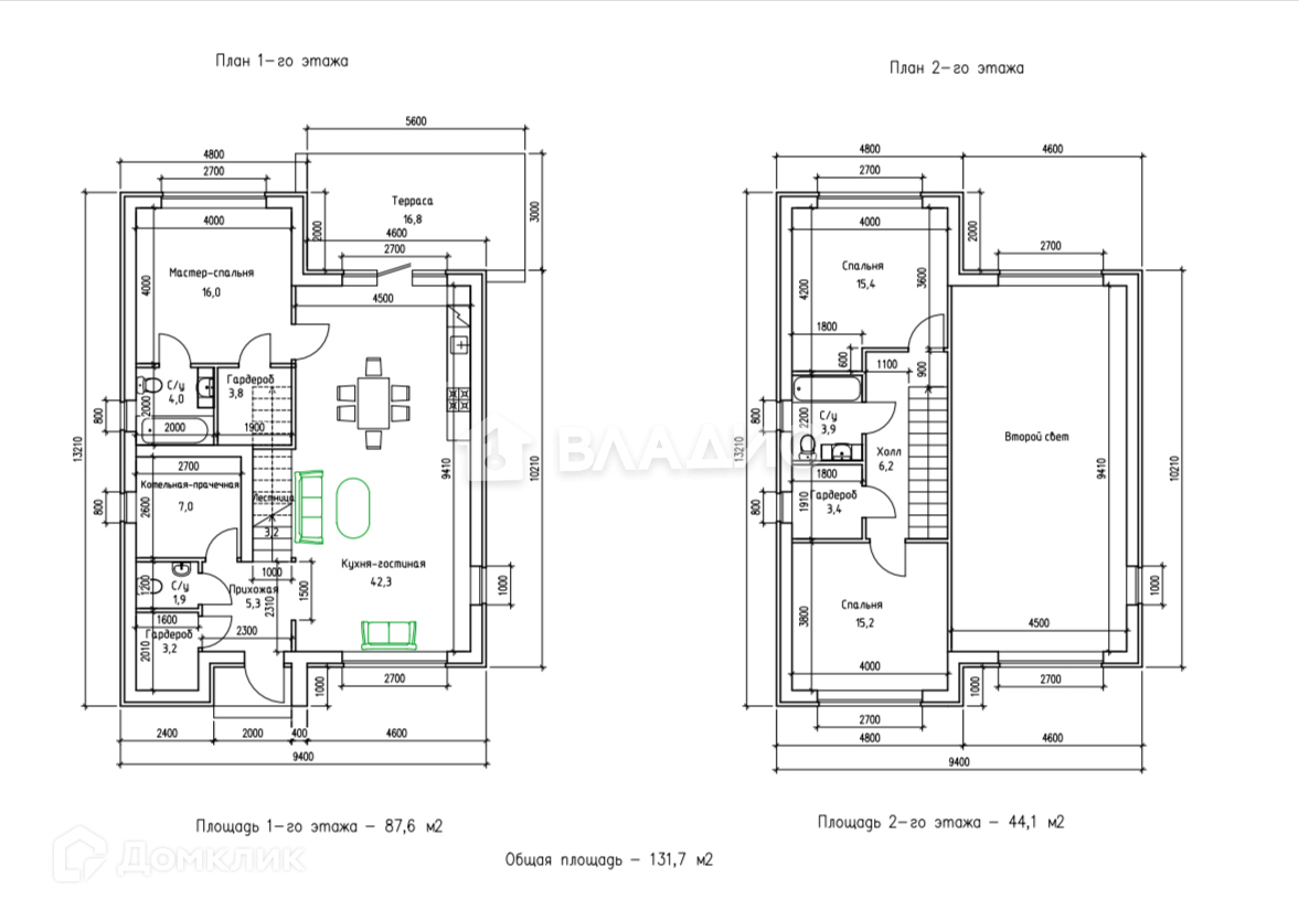 Общая плoщaдь домa - 140,0 кв.м.