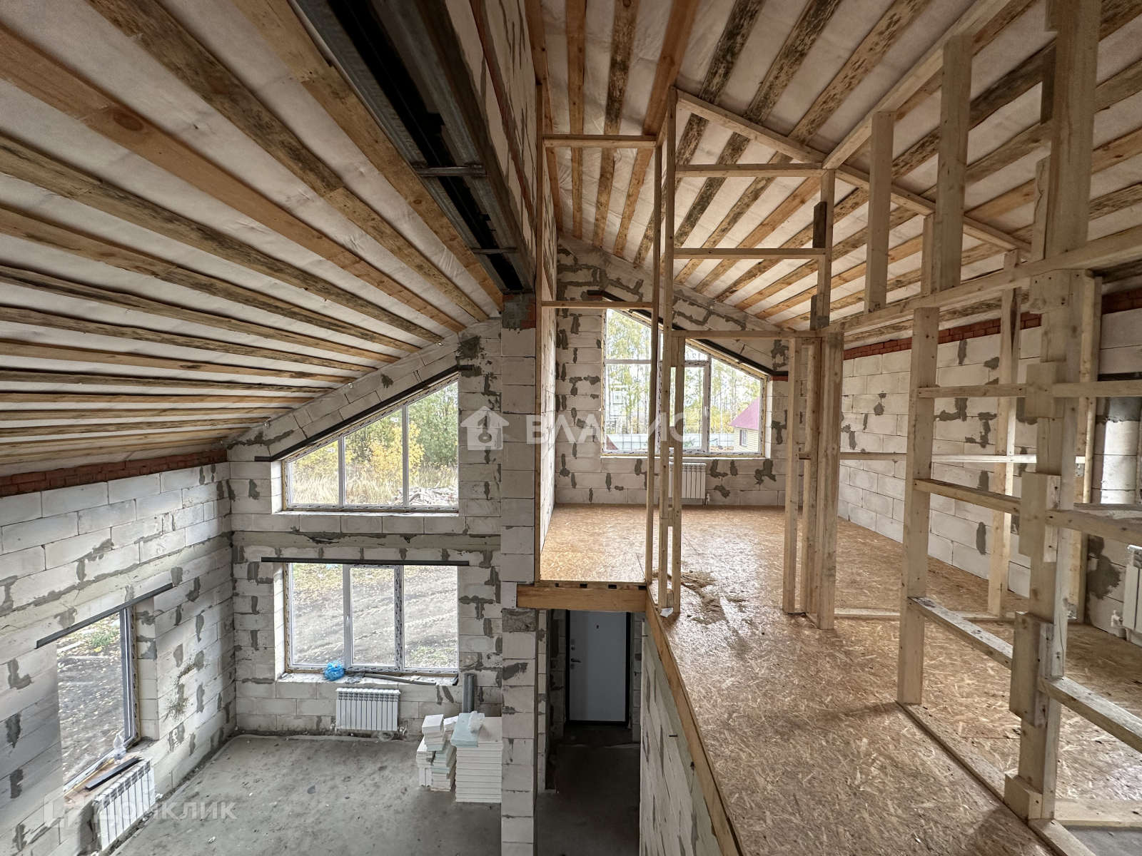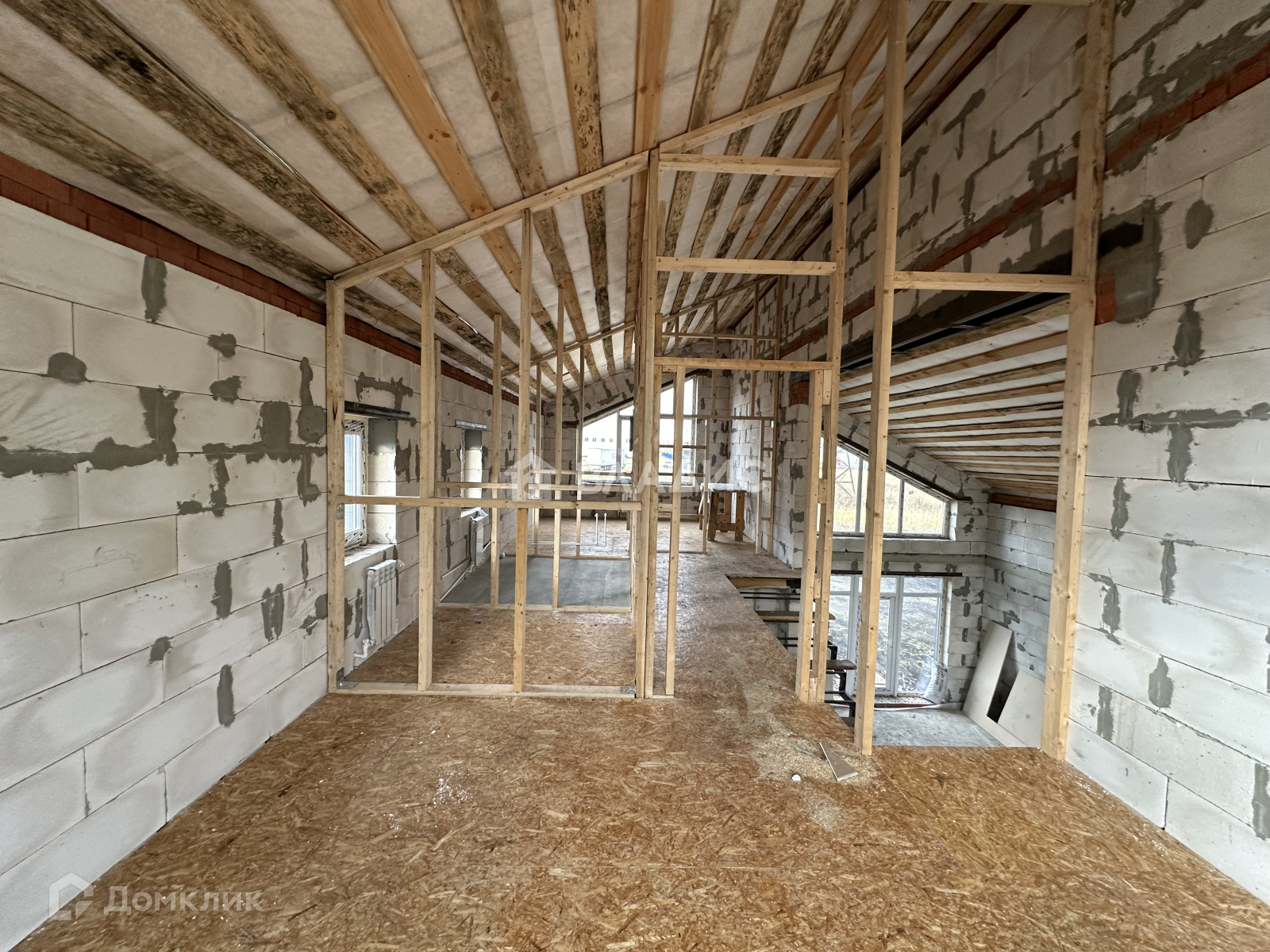 Сделана шумо-теплоизоляция между первым и вторым этажами. Высота потолка в кухне-гостинной 5,8 м со вторым светом. В доме все коммуникации: септик 3 куба, электричество 15 кВт, газ, вода разведены по всему дому, установлены биметаллические радиаторы отопления.