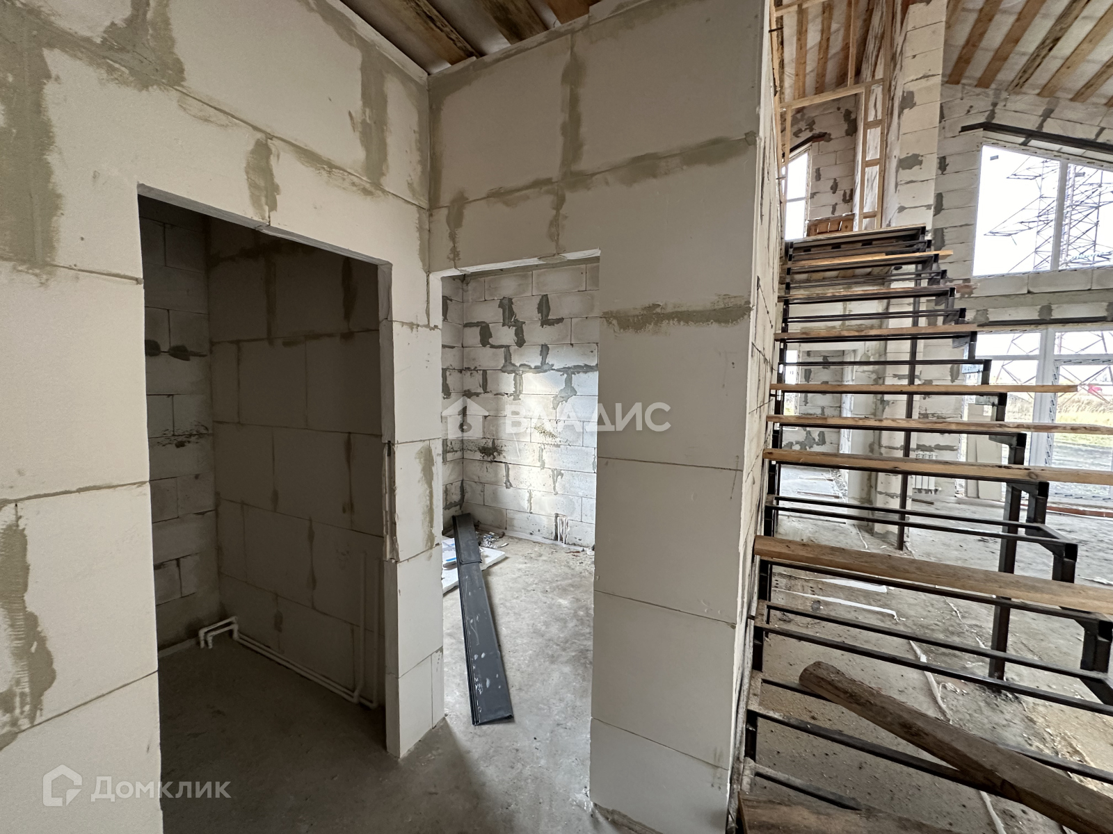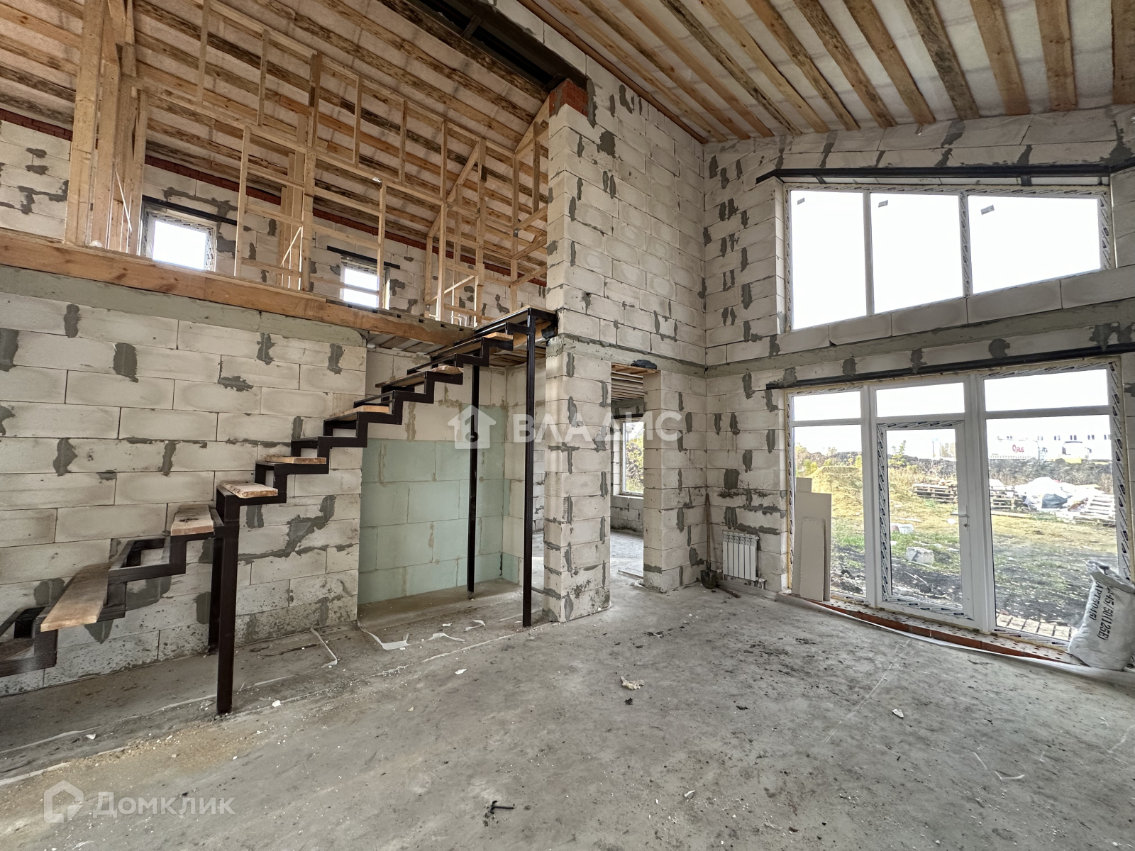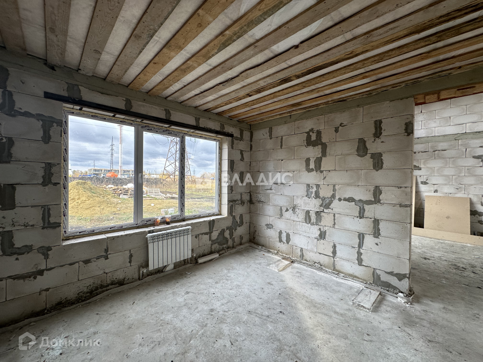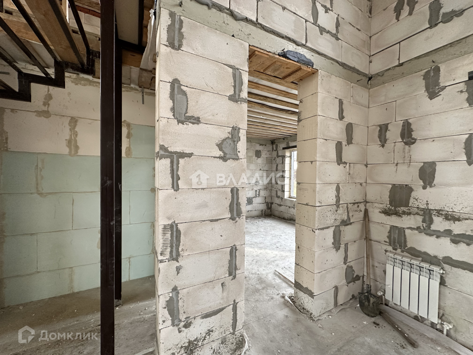 На первом этаже водяной теплый пол от газового котла, полусухая стяжка пола, стены отштукатурены.